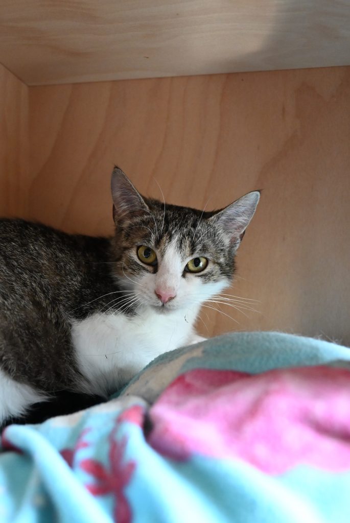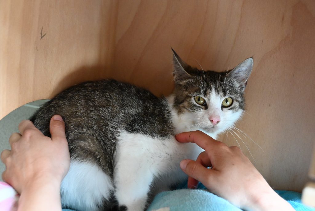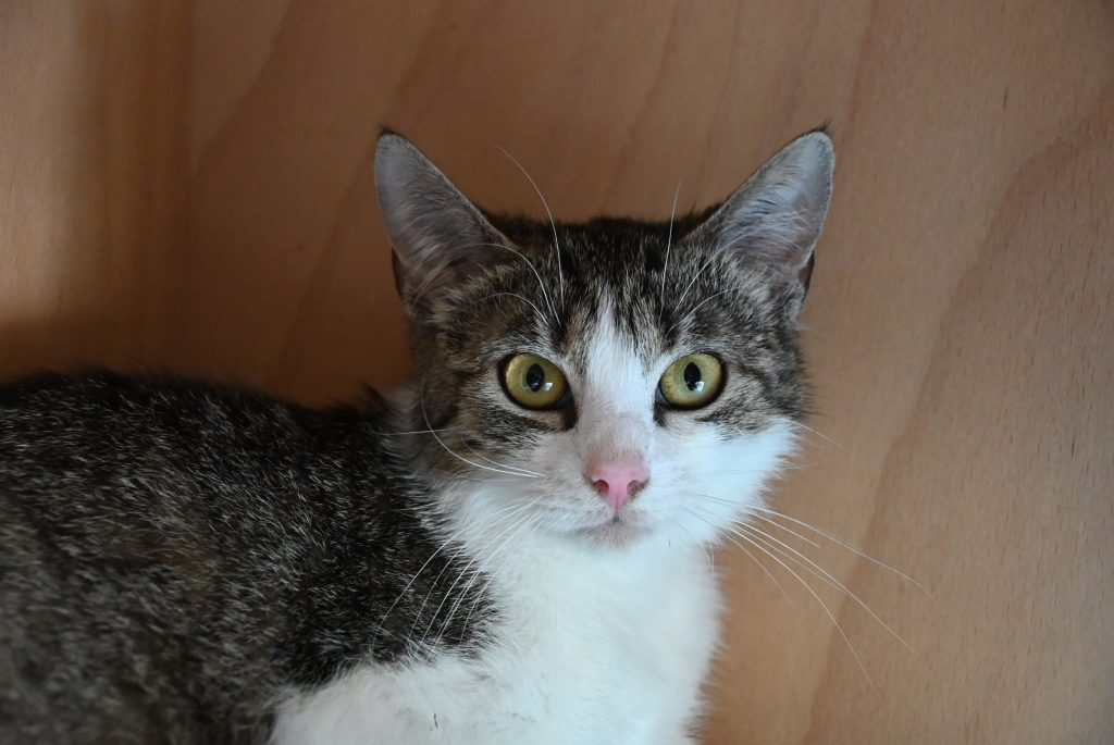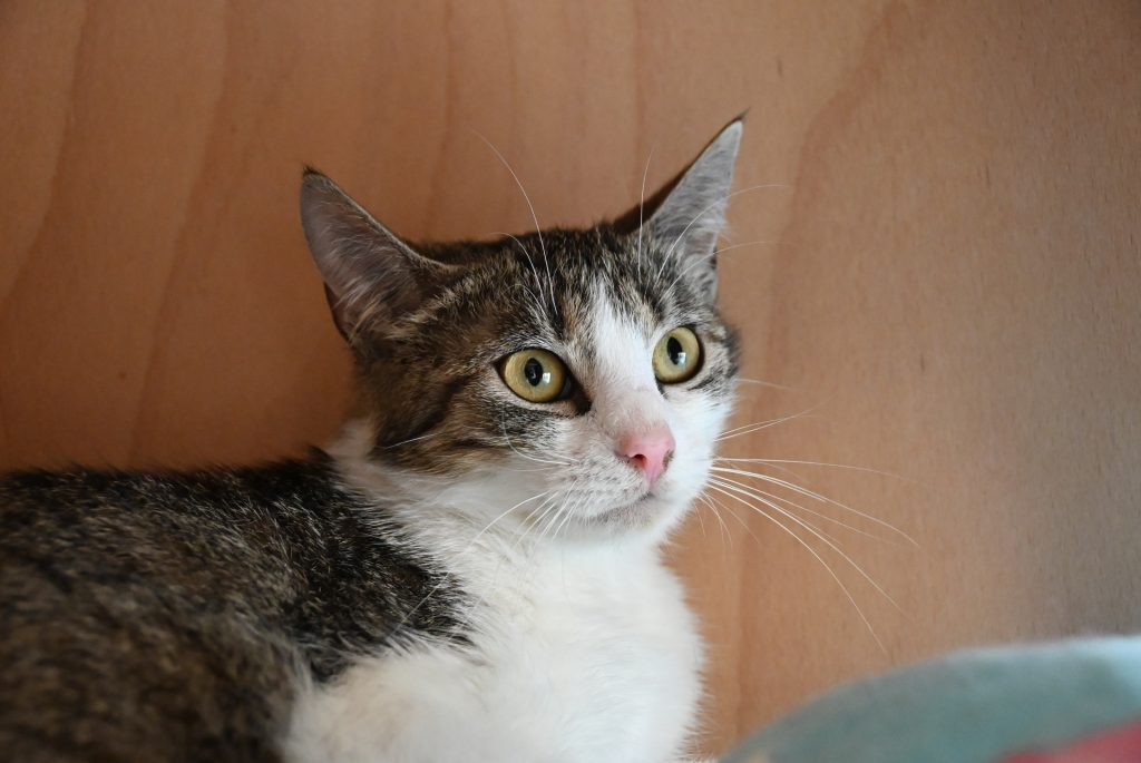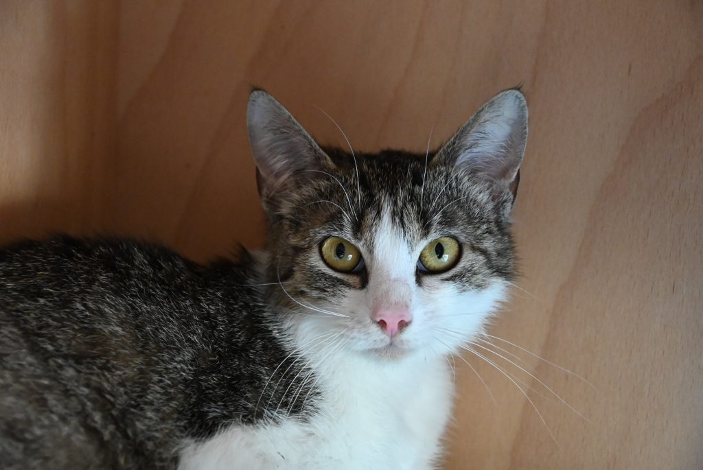 Aktuell hält das kleine Mädchen sich bei uns noch dezent im Hintergrund. Sie möchte nicht auffallen, alles ist noch etwas gruselig, laut und zu unberechenbar. Nimmt man sich aber die Zeit für sie, taut sie recht schnell auf und ist dem Menschen zugetan. Sie kann schon vorsichtig Streicheleinheiten genießen und findet es interessant, was die anderen Katzen so treiben.