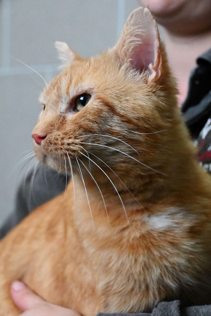 Er kam zu uns als völlig vermackelter, unkastrierter Kater und man sah ihm sein Leben auf der Straße deutlich an! Leider hat er sich bei seinen Kämpfen mit Katzenaids (FIV) angesteckt. Aktuell merkt man ihm jedoch nichts an.