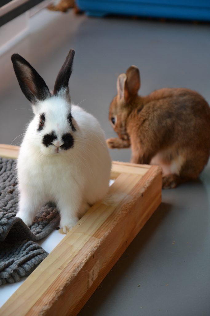 Flufflepuff ist eine zarte Seele. Er genießt gerne seine Ruhe und entspannt dabei. Anfangs war er eher zurückgezogen und manchmal etwas ängstlich. Das hat sich mittlerweile jedoch gelegt und er duldet den Menschenkontakt. Zur Fütterung akzeptiert er es auch mal gestreichelt zu werden. Mit anderen Kaninchen ist er bisher gut verträglich.