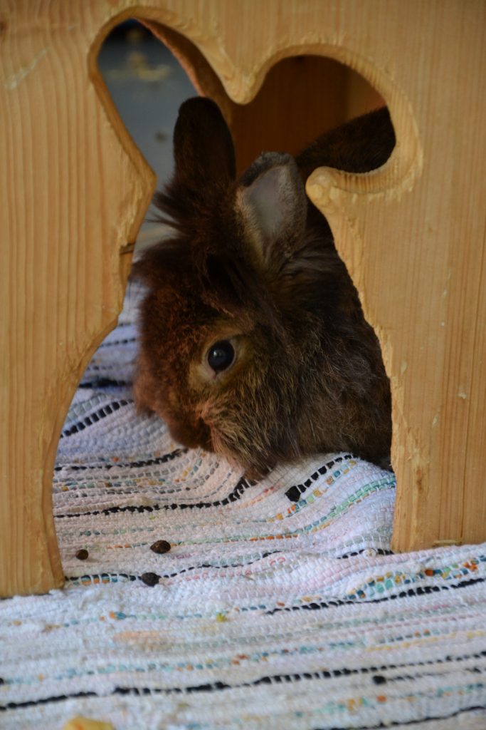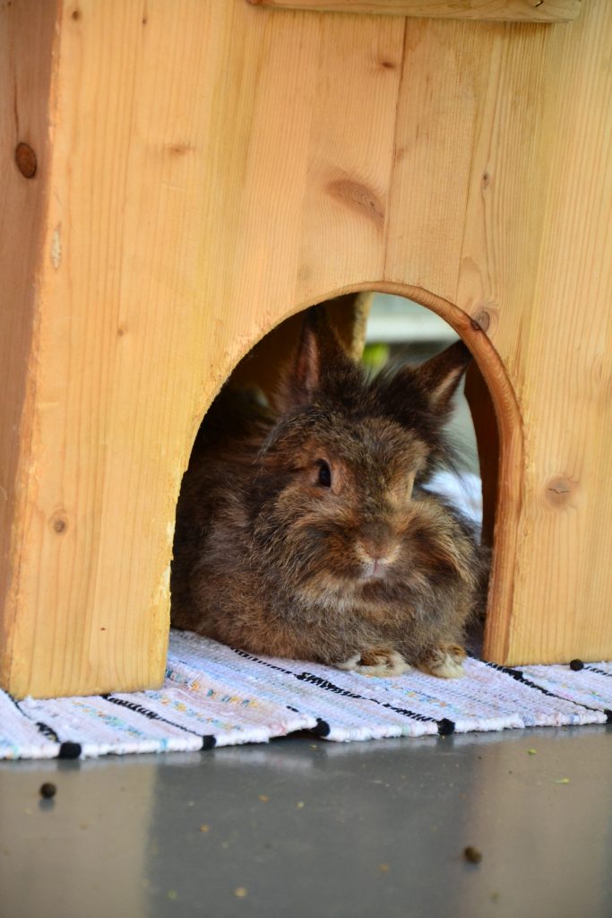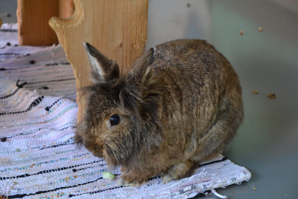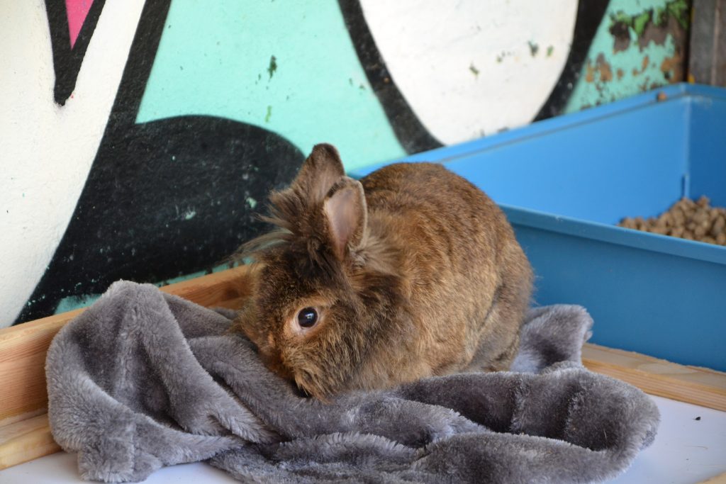 Nach der Impfung und Kastration durfte Hazel in das große Außengehege ziehen und neue Kaninchen kennenlernen. Das fand sie erst gar nicht schön und war sehr gestresst. Hinderlich ist zudem auch ihr Gewicht, woran unbedingt gearbeitet werden muss. Aber dafür lebt sie jetzt im großen Gehege und soll sich mehr bewegen, damit sie weiter abnimmt. Hazel ist in der Gruppe ein rangniedriges Tier und wird von anderen Kaninchen gejagt. Wahrscheinlich wäre sie mit einem älteren, ruhigeren Kaninchen als Partnertier glücklicher.