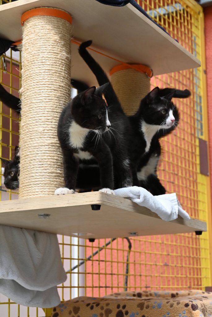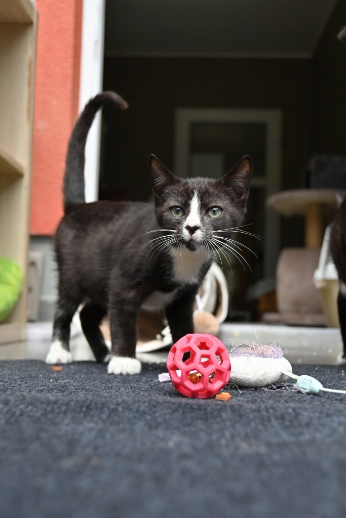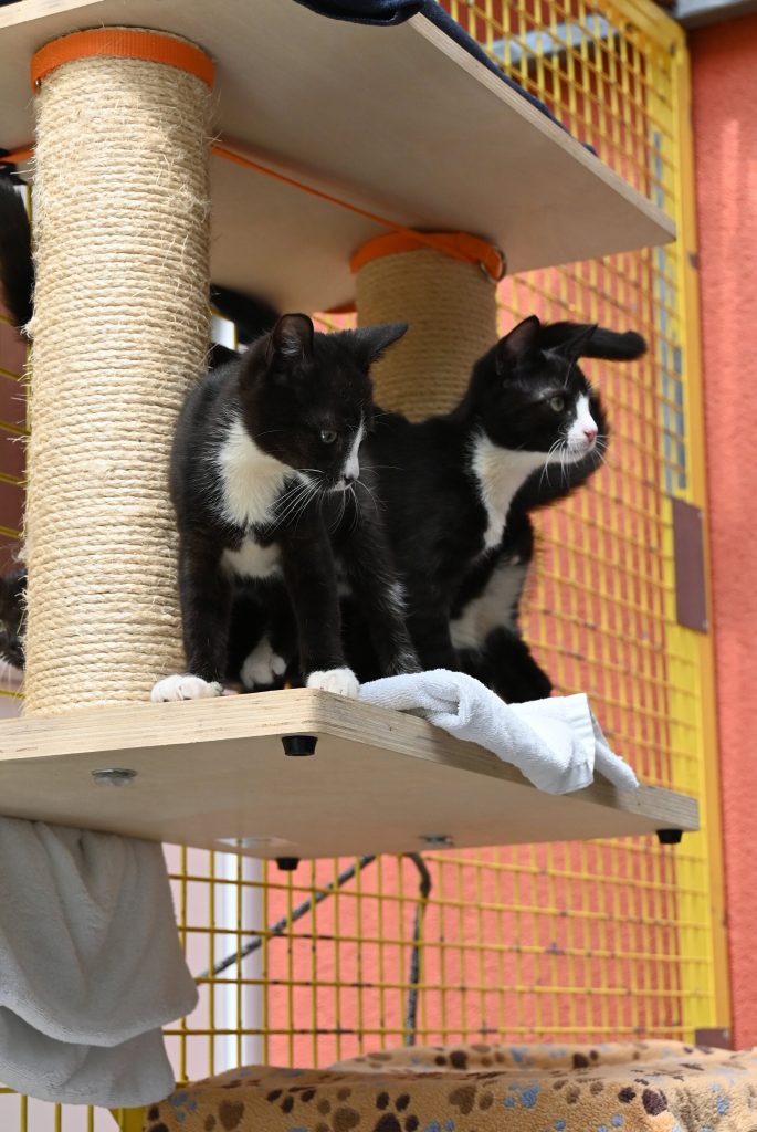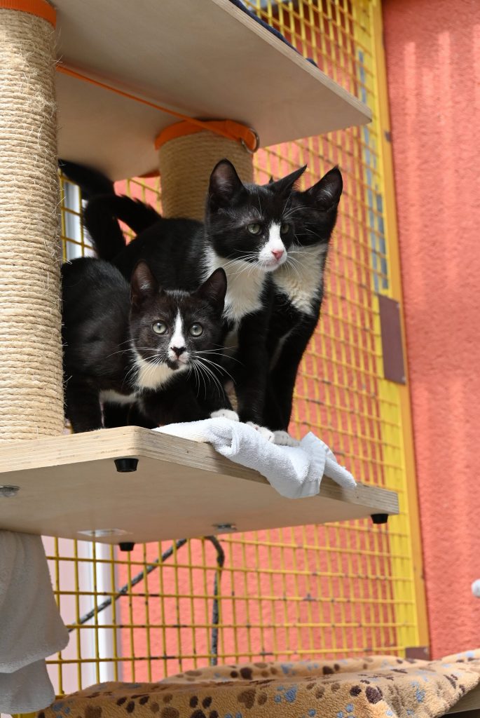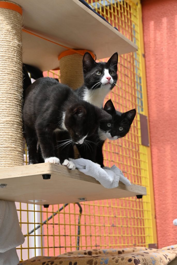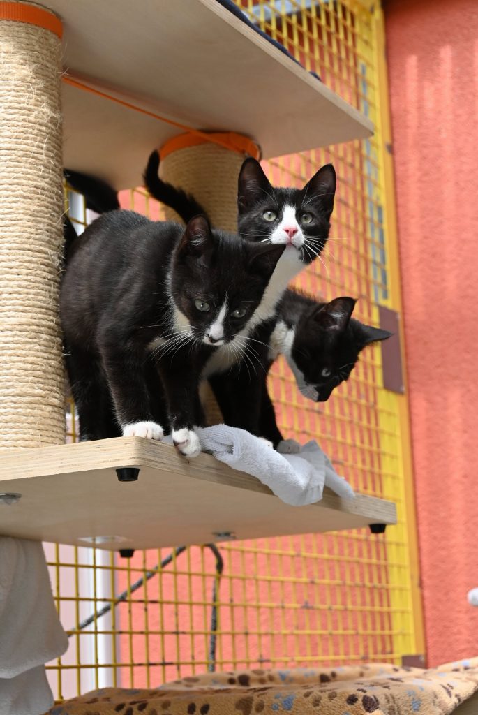 Die beiden Brüder JayJay und Pope sind aktuell die Partytruppe im Katzenhaus. Ständig sind sie in Action. Oft ohne Sinn und Verstand. Da kann es schon mal sein, dass sie in vollem Überschwank irgendwo runterfallen oder gegen laufen ;-) Das tut ihrer Freude aber keinen Abbruch. Die beiden haben den gleichen Unsinn im Kopf und Hummeln im Hintern, sodass sie das perfekte Match sind, für alle die sich Leben in der Bude wünschen. Sie können gemeinsam auch zu anderen Katzen ziehen. Im Umgang mit dem Menschen sind sie allerdings nicht so verrückt. Da genießen sie die Streicheleinheiten sehr. Aufgrund ihrer hohen Energie, würden wir die beiden eher im Freigang sehen, wo sie ihre Energie besser loswerden können.