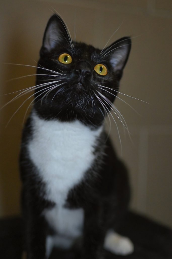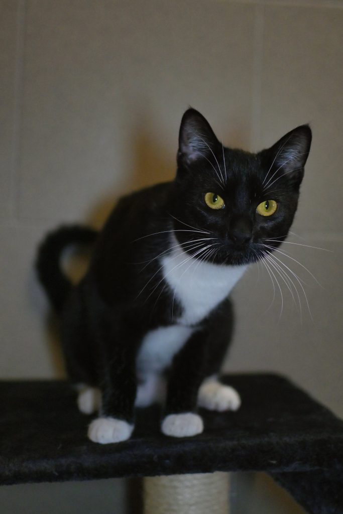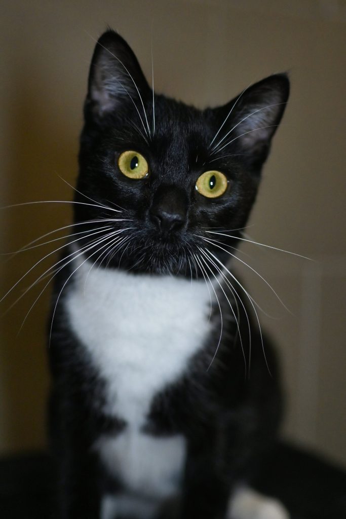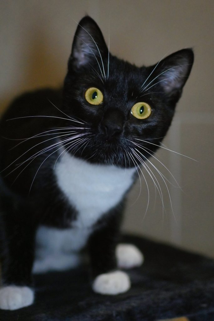 Die schwarze Schönheit mit den weißen Socken hat genau raus, wie man Menschen um die Pfote wickelt. Unsere Herzen hat sie im Sturm erobert.