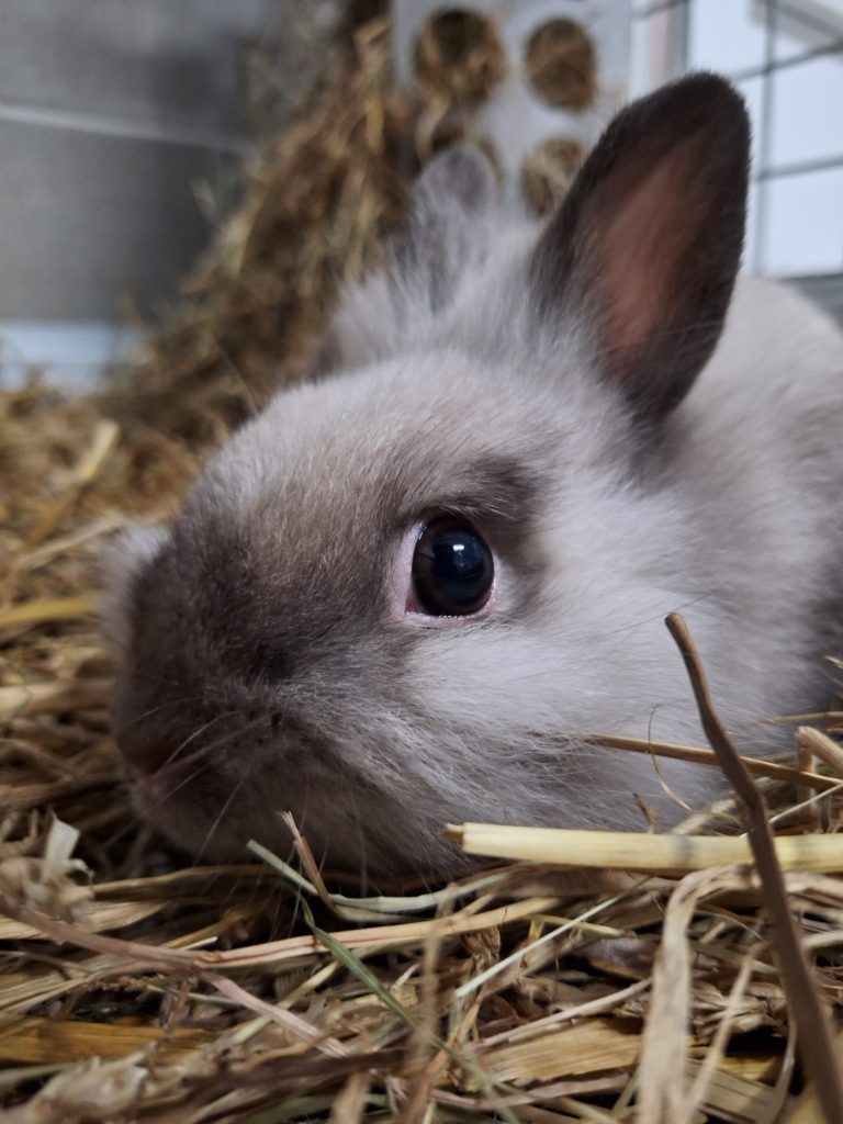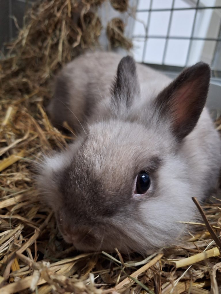 Der süße, kleine Löwe eignet sich ideal für die freie Wohnungshaltung, da er stubenrein ist und diese Haltungsform bereits kennt. Er kommt gerne mal mit auf das Sofa und chillt dort. Auch andere erhöhte Liegenflächen findet er super. Zu anderen Kaninchen ist er unterwürfig und ordnet sich schnell unter. Menschen begegnet er eher kontaktscheu, er kommt mal kurz schnuppern, aber das war es dann auch von seiner Seite aus. Dafür ist er sehr erkundingsfreudig und dreht eure Wohnung gerne mal auf links, weil er sich in jede noch so kleine Ecke quetschen muss.