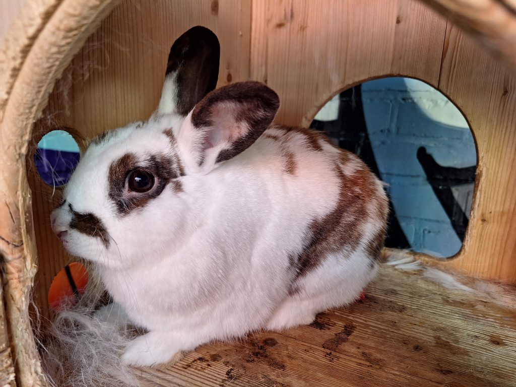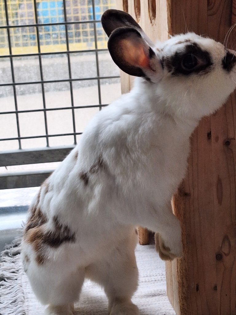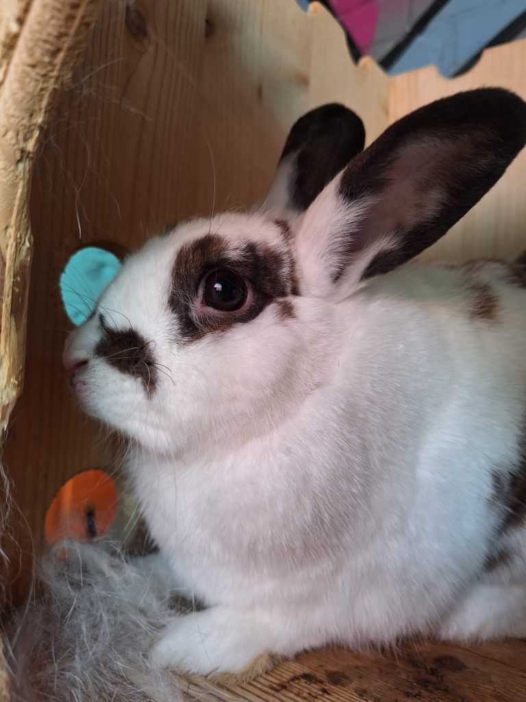 Lilly, Kiwi, Elvis und Kalle wurden als Gruppe bei uns abgegeben, weil man aufgrund eines Umzuges keine Kaninchenhaltung mehr ermöglichen konnte. Alle stammen aus einem Wurf, sind also Geschwister, und seit Geburt an zusammen. Alle buddeln gerne und freuen sich daher über eine Buddelmöglichkeit im zukünftigen Zuhause.