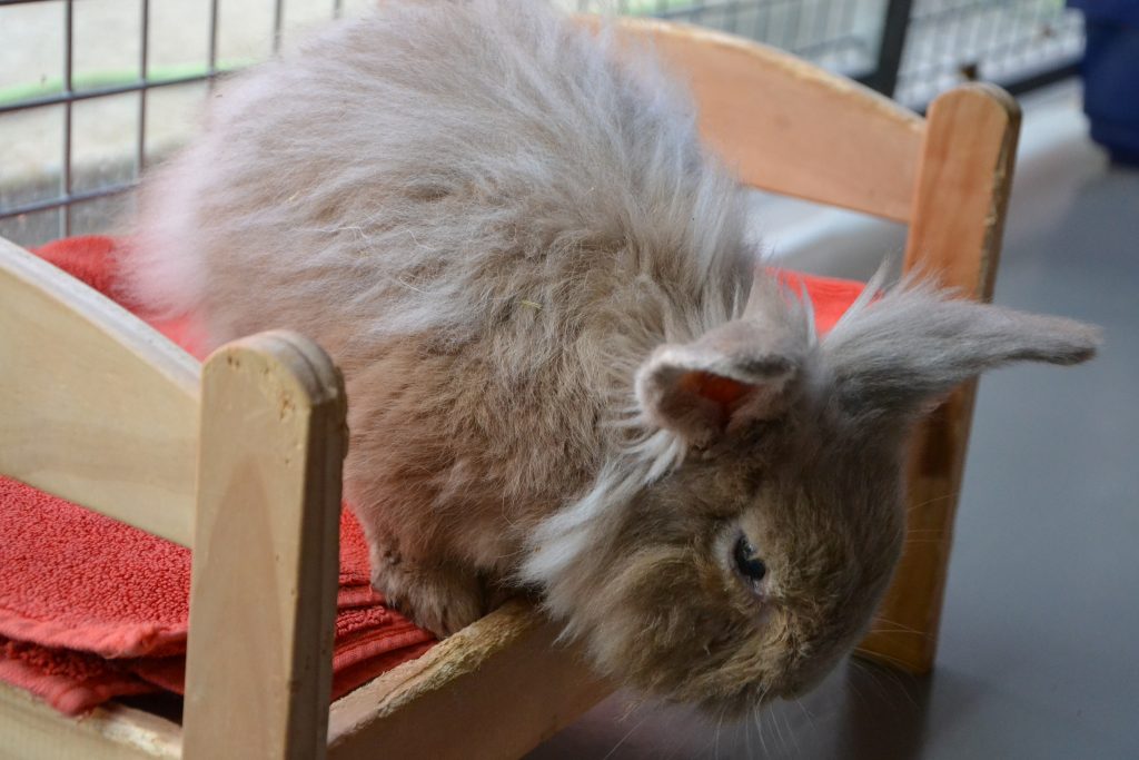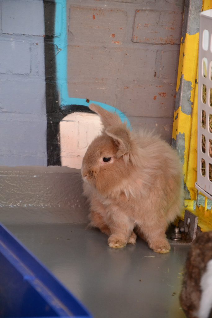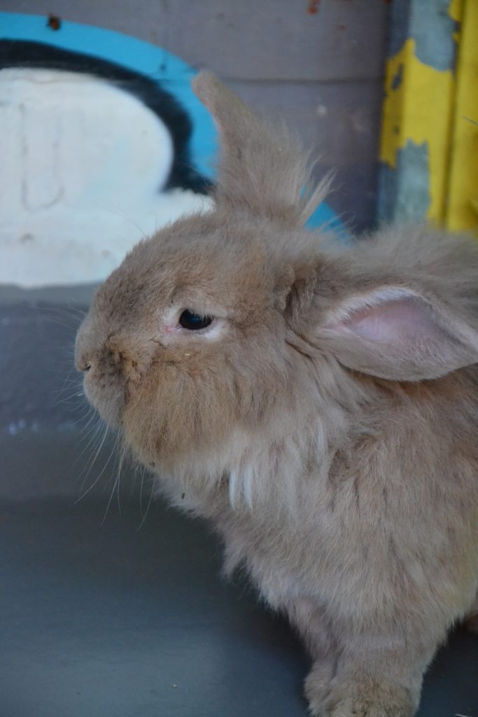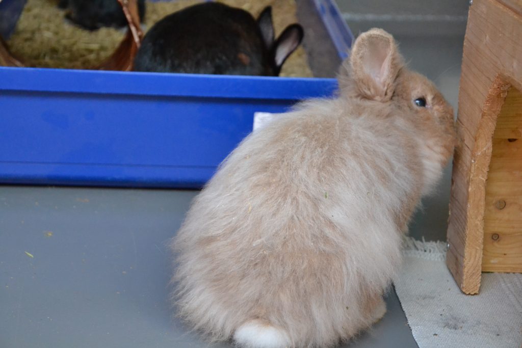 Der wuschelige Mufasa kam zu uns, nachdem er lästig geworden war und man die Kaninchenhaltung beenden wollte. Er hat sein Leben bisher leider einsam im Käfig verbingen müssen.