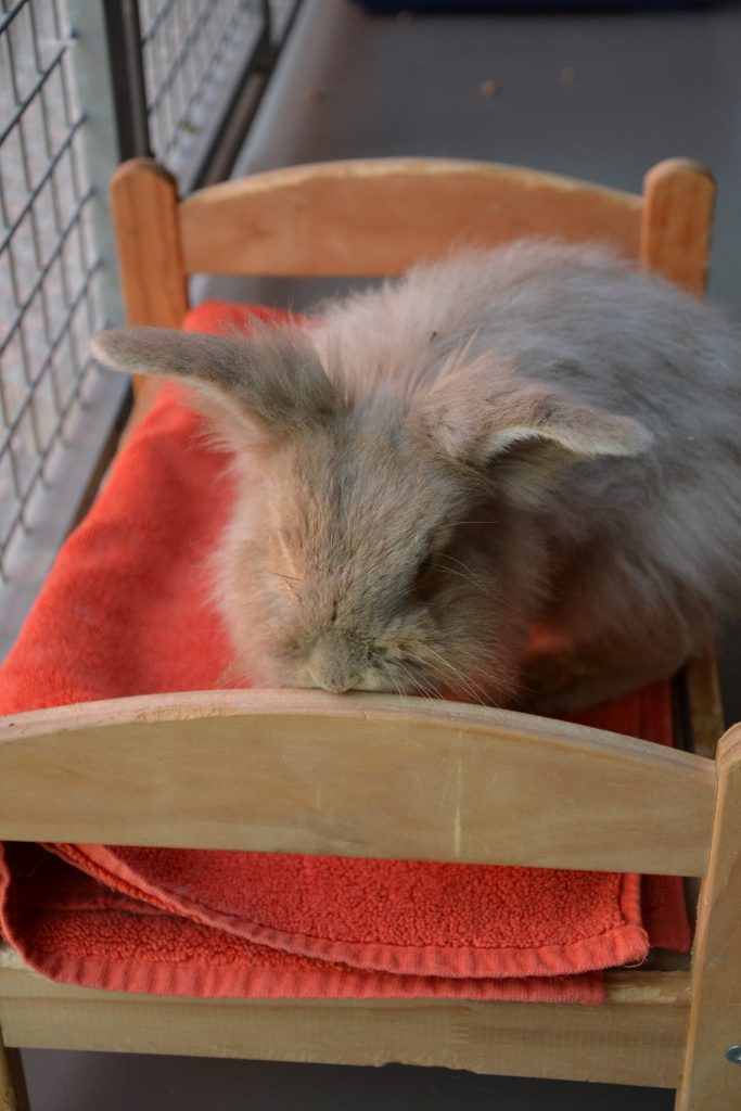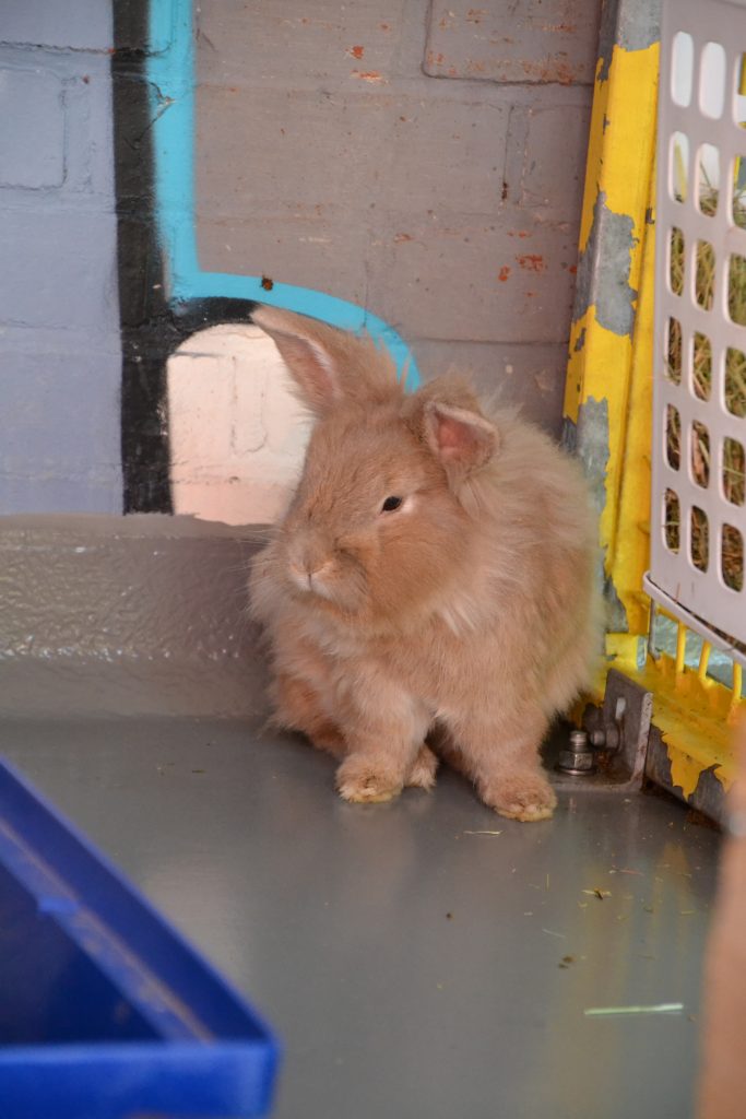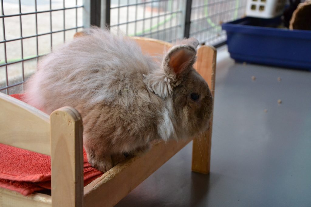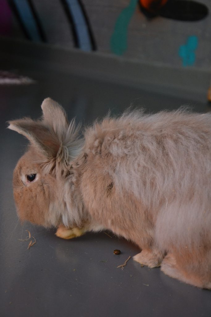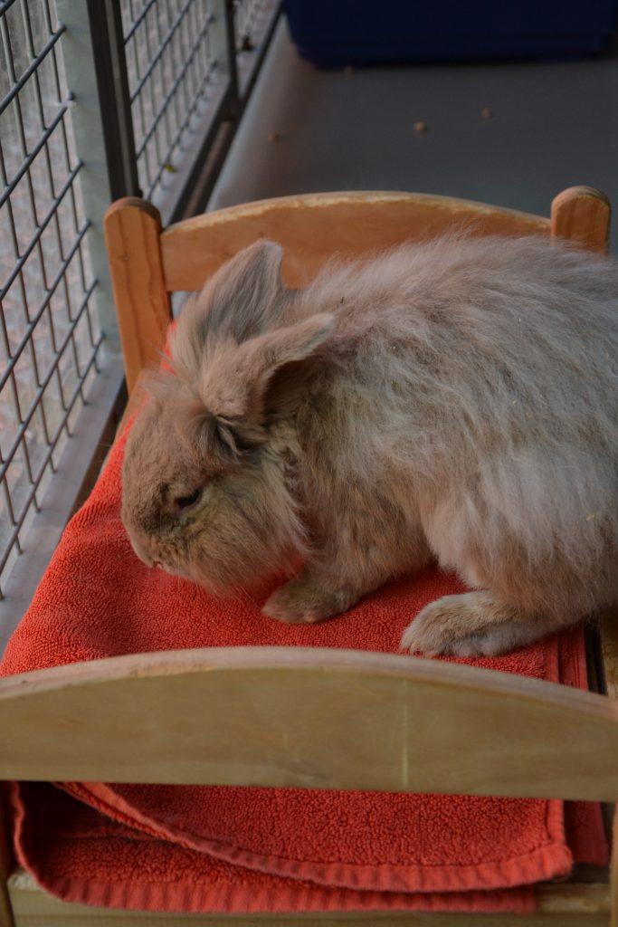 Der wuschelige Mufasa kam zu uns, nachdem er lästig geworden war und man die Kaninchenhaltung beenden wollte. Er hat sein Leben bisher leider einsam im Käfig verbingen müssen.