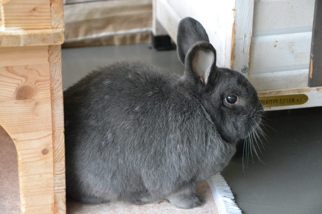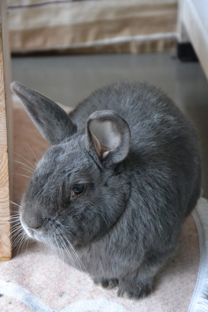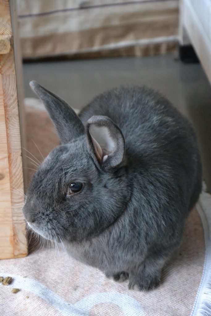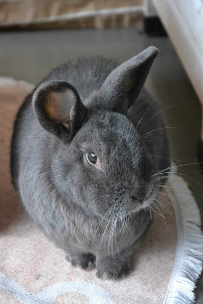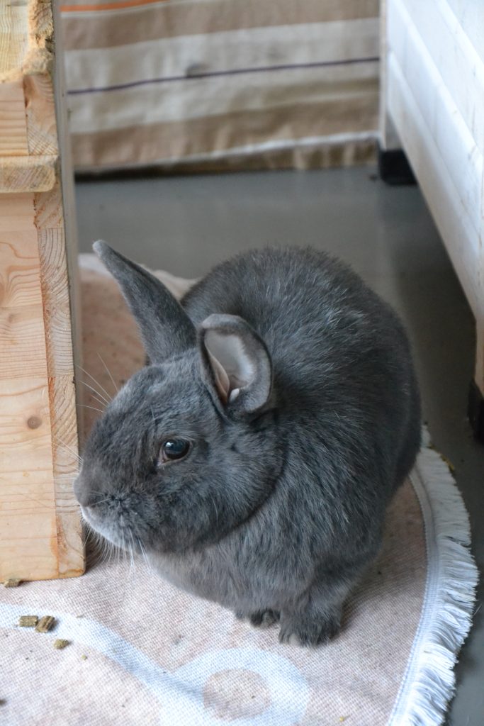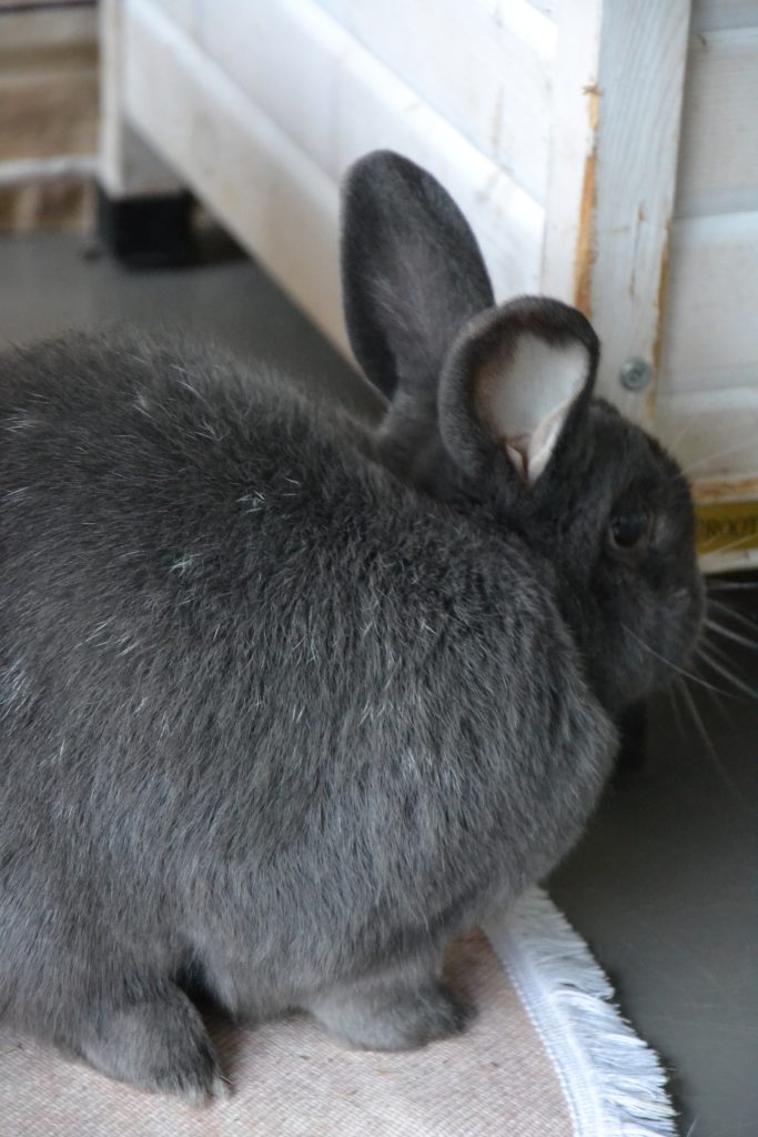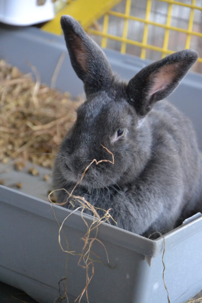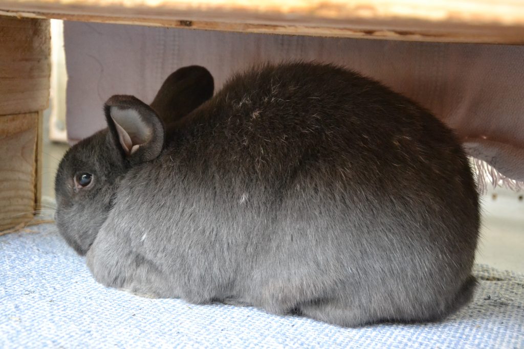 Dobby, Tic und Toe kamen nach 5 Jahren wieder zurück ins Tierheim, da ein Umzug die weitere Versorgung der Kaninchen unmöglich machte. Aus den einst jungen Teenager Kaninchen sind nun Senioren geworden. Toe ist ordentlich gewachsen und hat gut an Gewicht zugelegt. Ihre Größe sollte man vor der Anschaffung beachten und dementsprechend große Kaninchenmöbel im Gehege stehen haben.