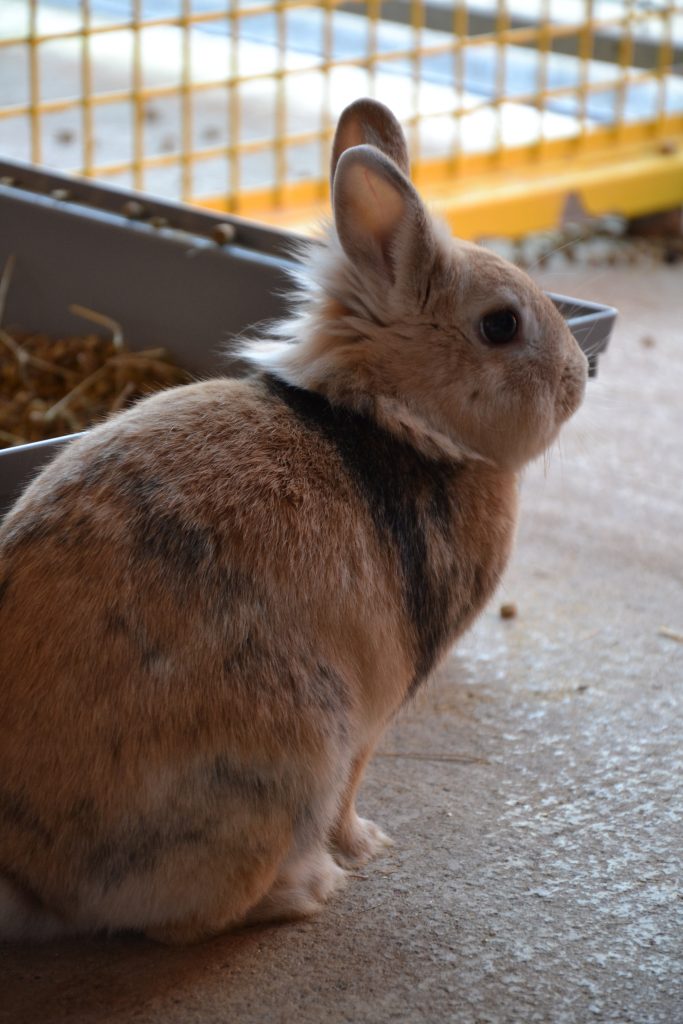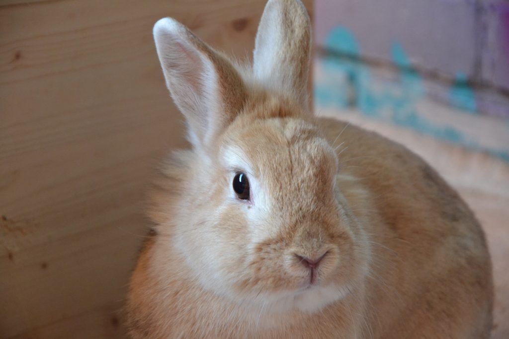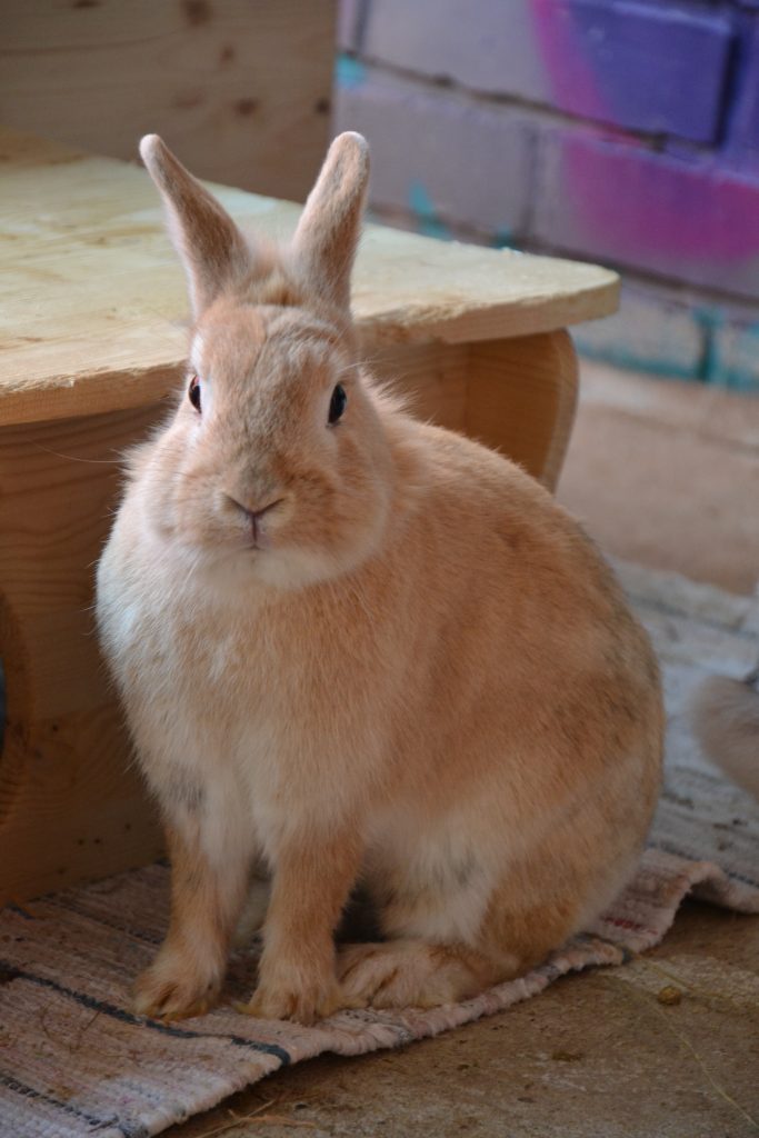 Beanie ist da etwas anspruchsloser. Sie kam ursprünglich aus einer größeren Kaninchengruppe zu uns und kennt das Zusammenleben mit vielen Kaninchen. Sie hat sich Prosecco untergeordnet und kuschelt gerne mit ihm. Menschenkontakt findet sie nicht sehr interessant, aber sie rennt nicht sofort ängstlich weg.
