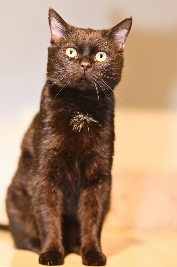 Der zarte, schwarze Kater wartet noch in der Quarantäne auf Platz im Katzenhaus oder im besten Fall gleich auf seine eigenen vier Wände. Wie er sich mit anderen Katzen versteht ist noch nicht bekannt.