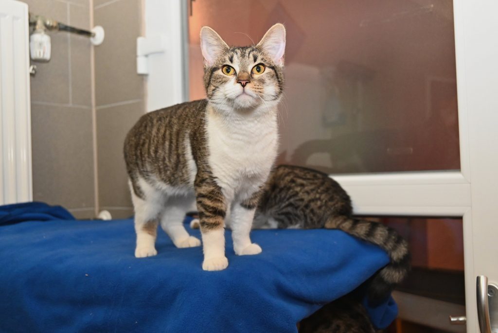 Bilbo Beutlin hat zudem eine Fehlstellung im linken Vorderbein. Er wird es sich als junges Kitten gebrochen haben und dann ist es schief zusammengewachsen. Das ist aber nur ein optischer Makel, stören tut es ihn in keinster Weise!