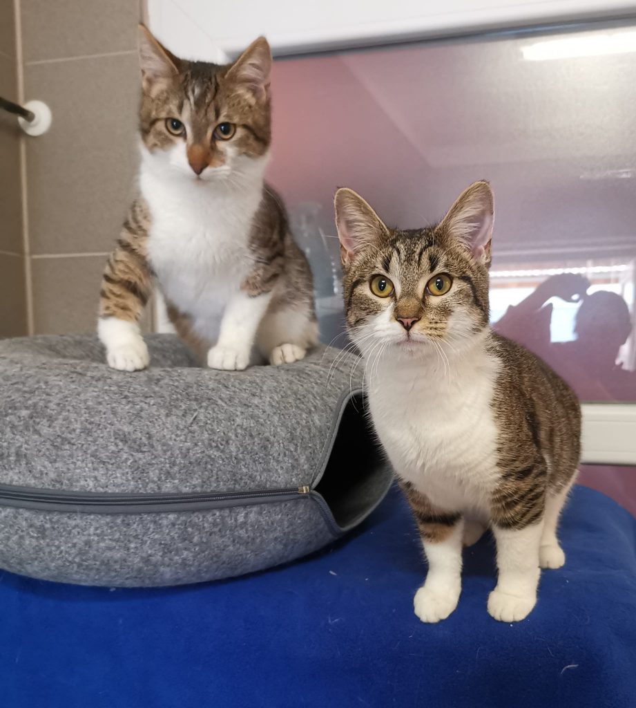 Die beiden sind super sozial und könnten auch zu bereits vorhandenen Katzen ausziehen.