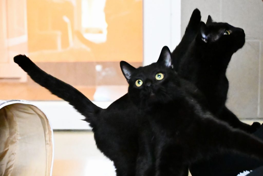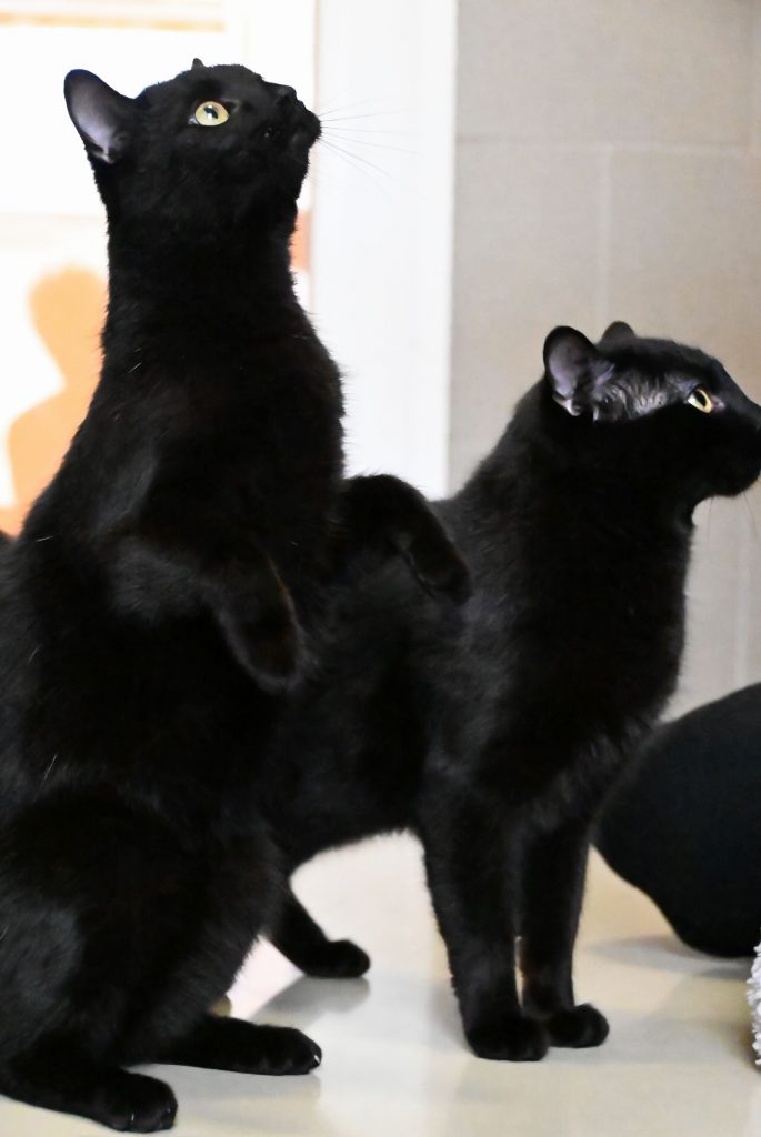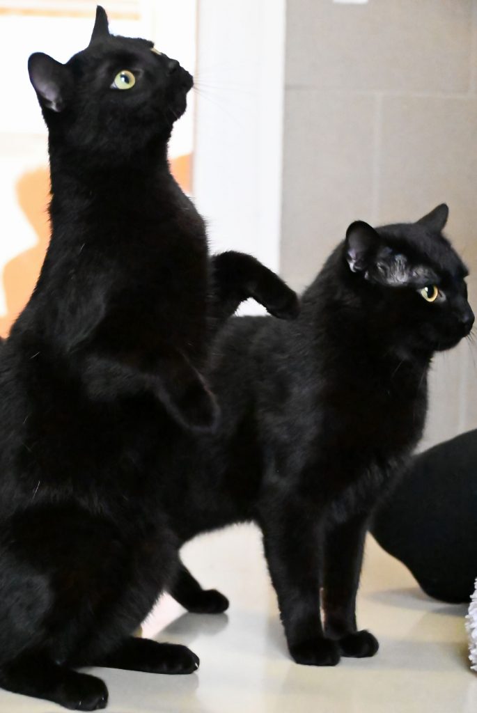 Beide hätten auch kein Problem mit Hunden im neuen Zuhause. Allerdings ist Bob nicht begeistert von fremden Katern, Kätzinnen sind aber meist okay.