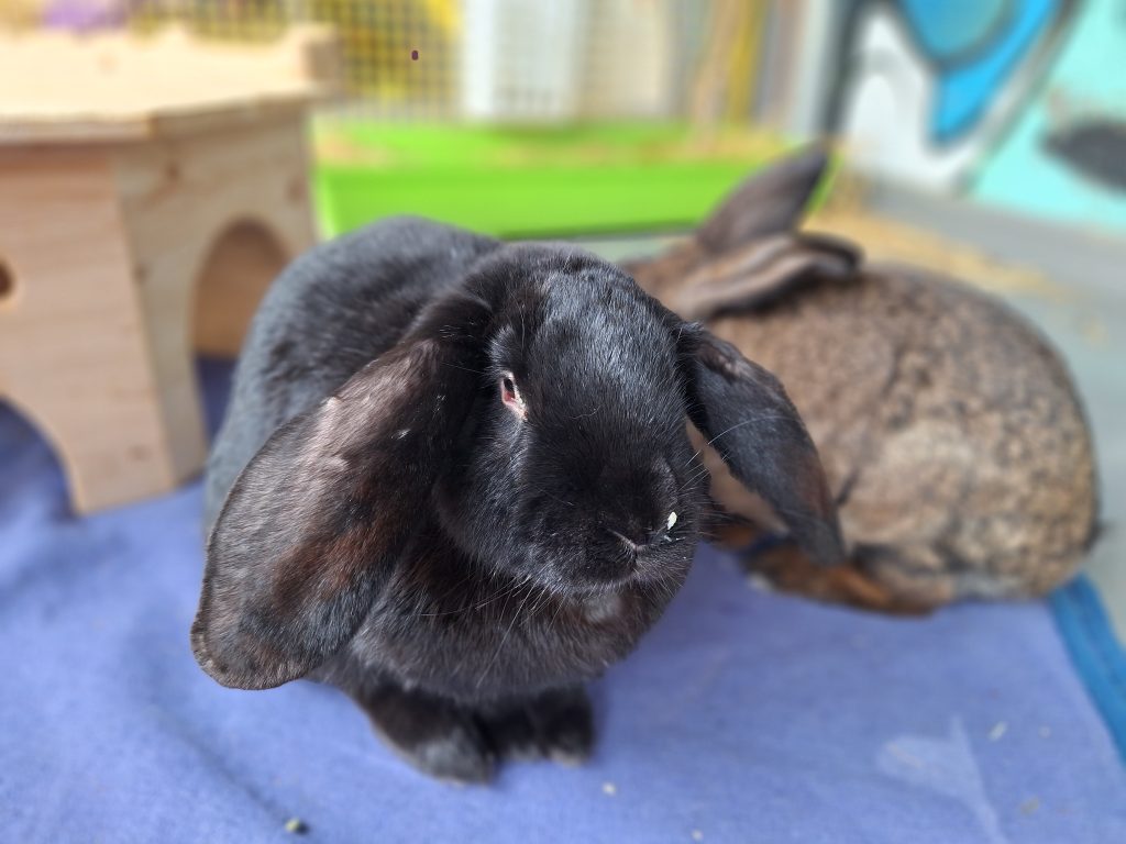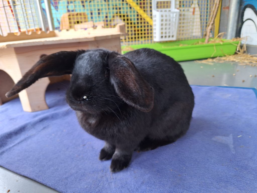 Bonsai kam in etwas schlechterem Zustand zu uns. Ein Schnupfen hatte ihn erwischt. Scheinbar trägt er ihn schon länger mit sich herum. Die medizinische Behandlung schlug leider nicht wirklich an und so gehen wir davon aus, dass der Schnupfen bei ihm chronisch ist und bleibt. Wegen der Ansteckungsgefahr kann er daher nur zu ebenfalls erkrankten Kaninchen ziehen.