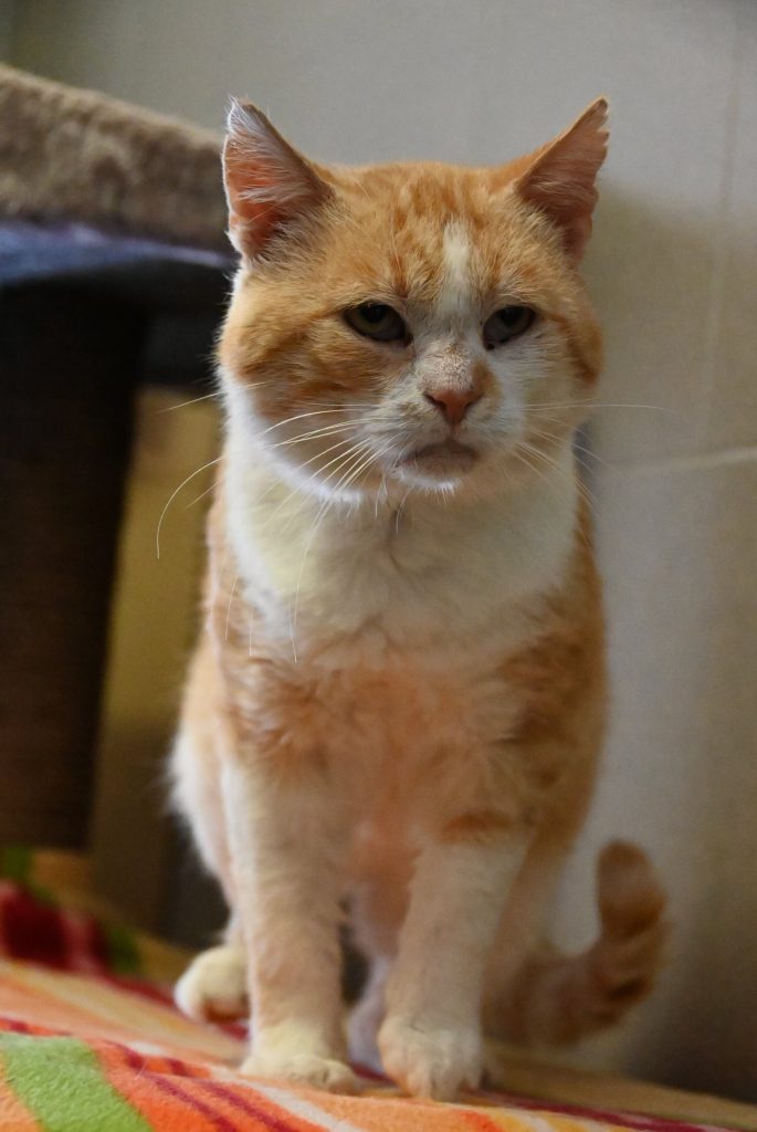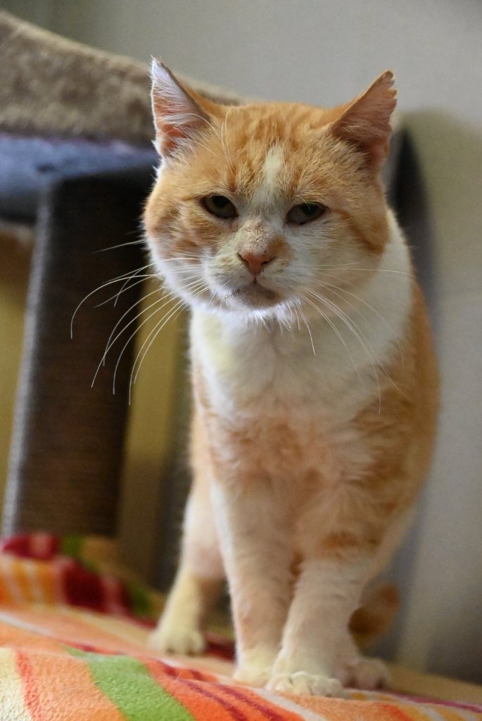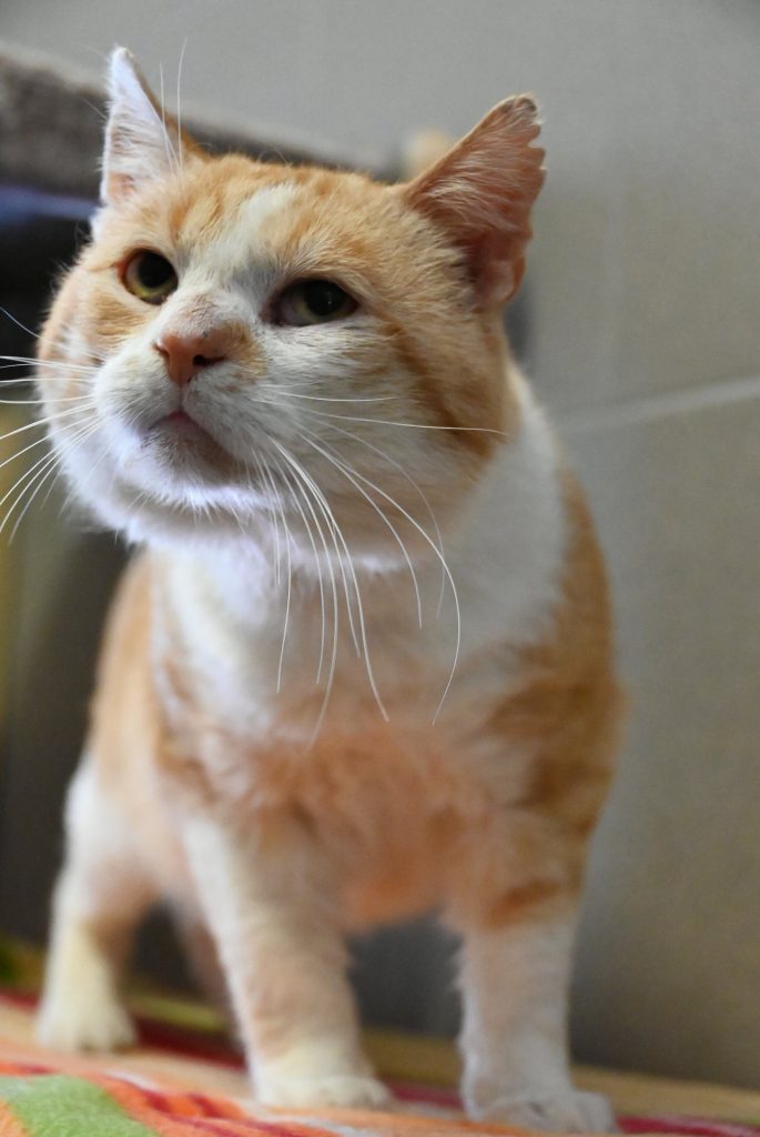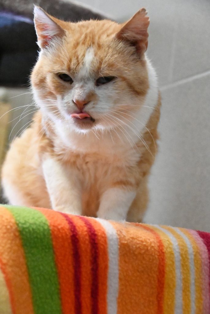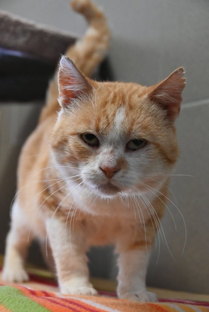 Er zeigt sich im Katzenhaus nicht grundsätzlich unverträglich mit anderen Katzen, wenn diese aber Streit suchen springt er sofort darauf an, daher vermutlich auch sein verwegenes Äußeres….
