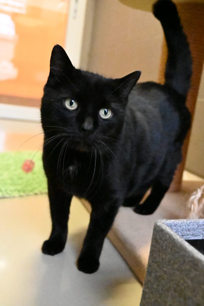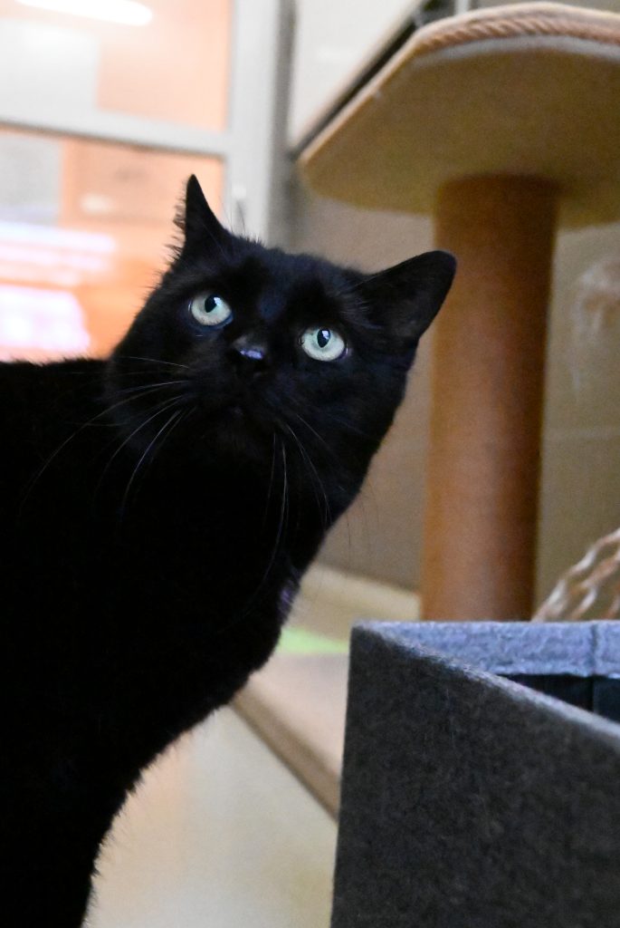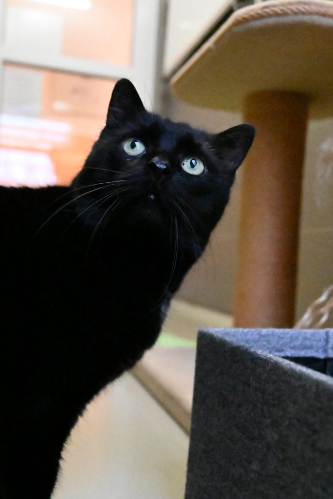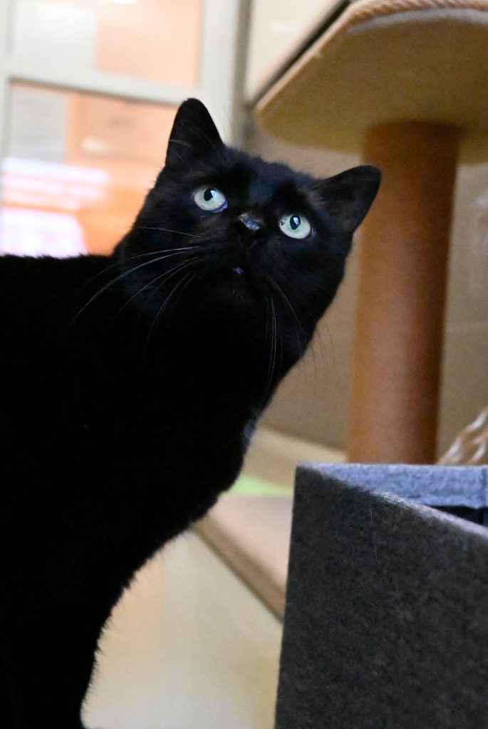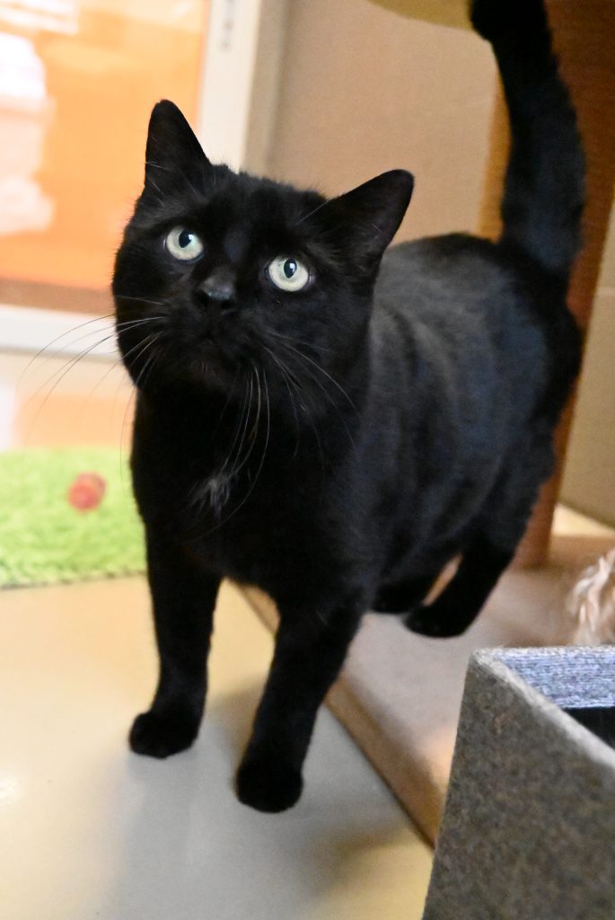 Aufgeweckt und neugierig nimmt der schwarze Kater Kontakt zu neuen Menschen auf und verschenkt bei Sympathie auch gern sein Herz.