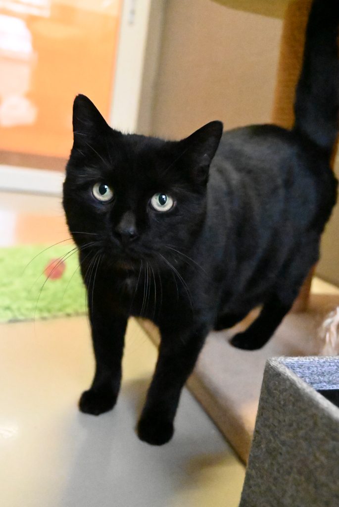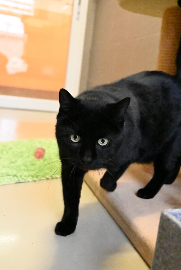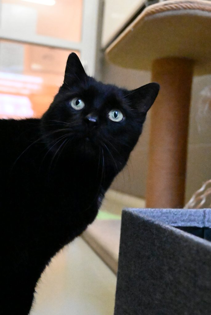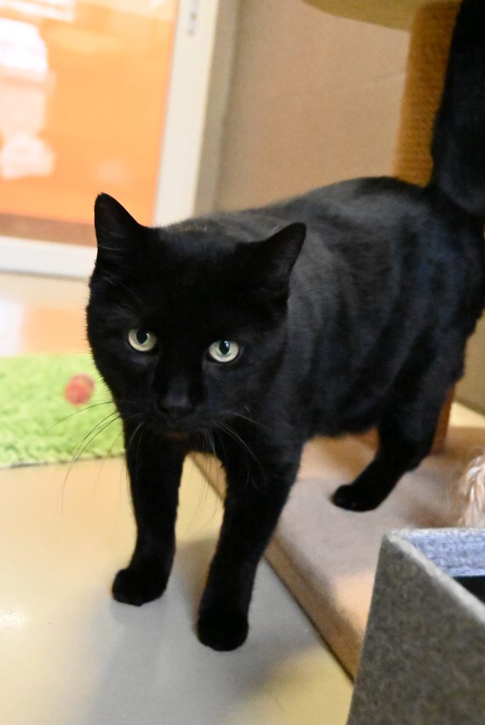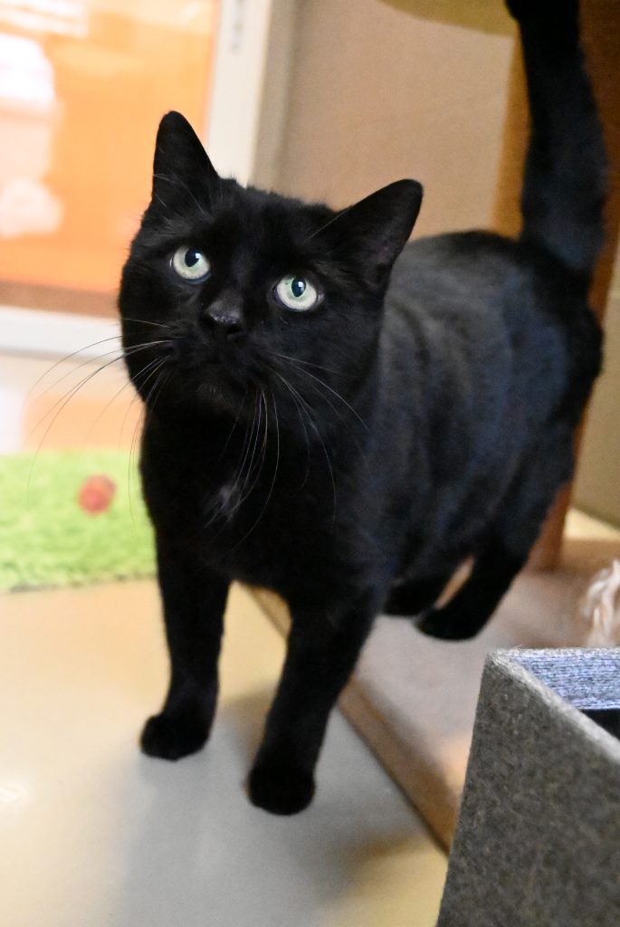 Aufgeweckt und neugierig nimmt der schwarze Kater Kontakt zu neuen Menschen auf und verschenkt bei Sympathie auch gern sein Herz.