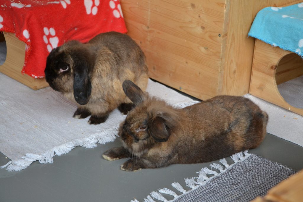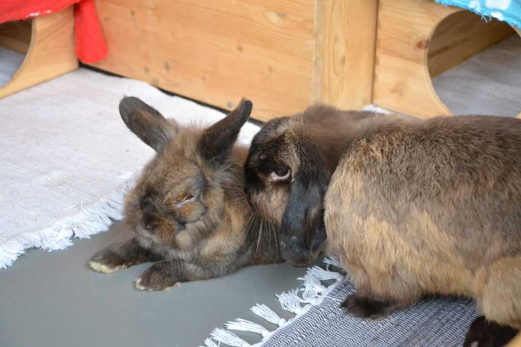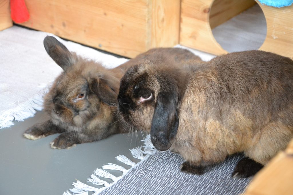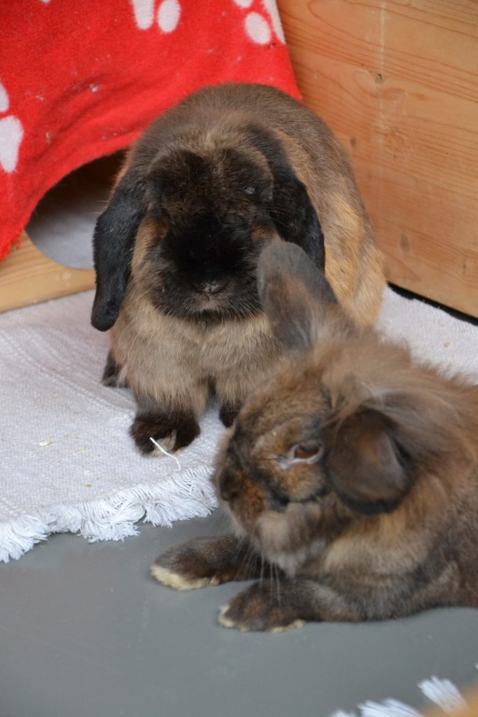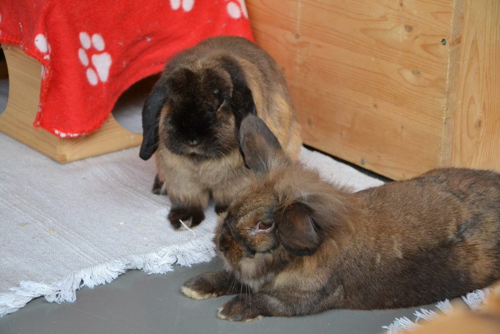 Ihre Verträglichkeit mit anderen Kaninchen müssen wir erst noch beobachten, die Tendenz geht aber eher zur Paarhaltung anstatt zur Gruppenhaltung. Mit Ted versteht sie sich super und die beiden teilen sich nun ein eigenes Gehege.