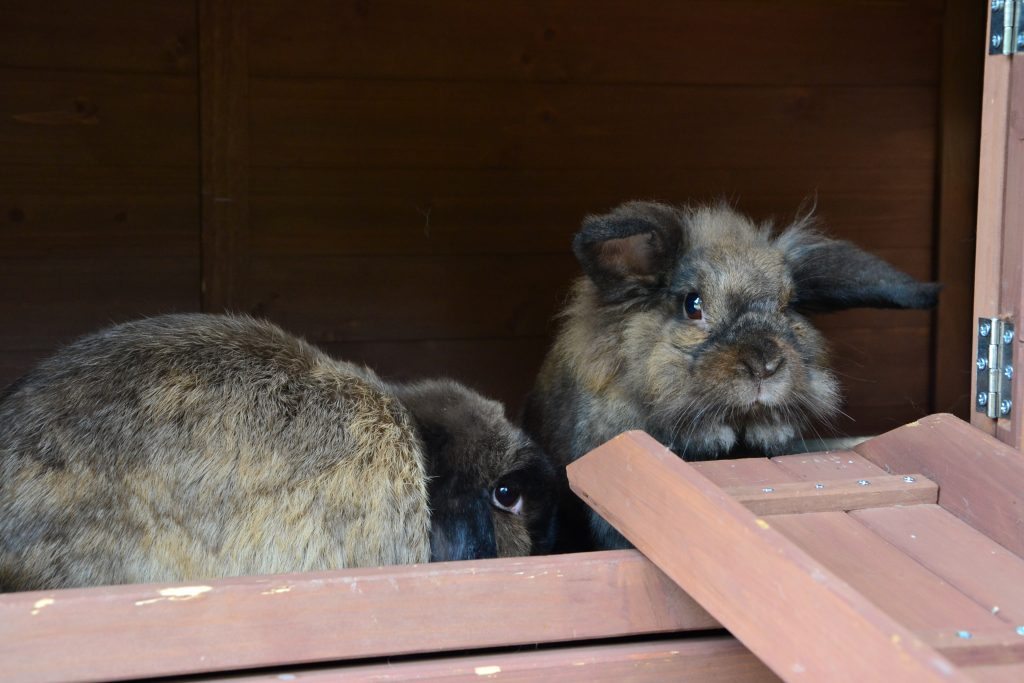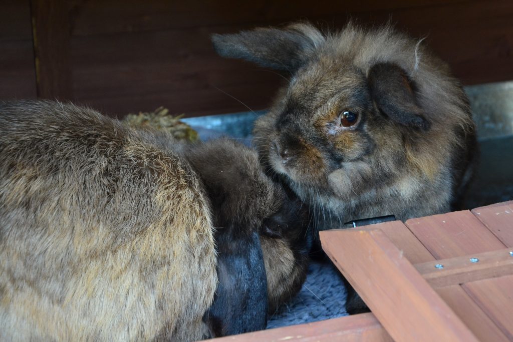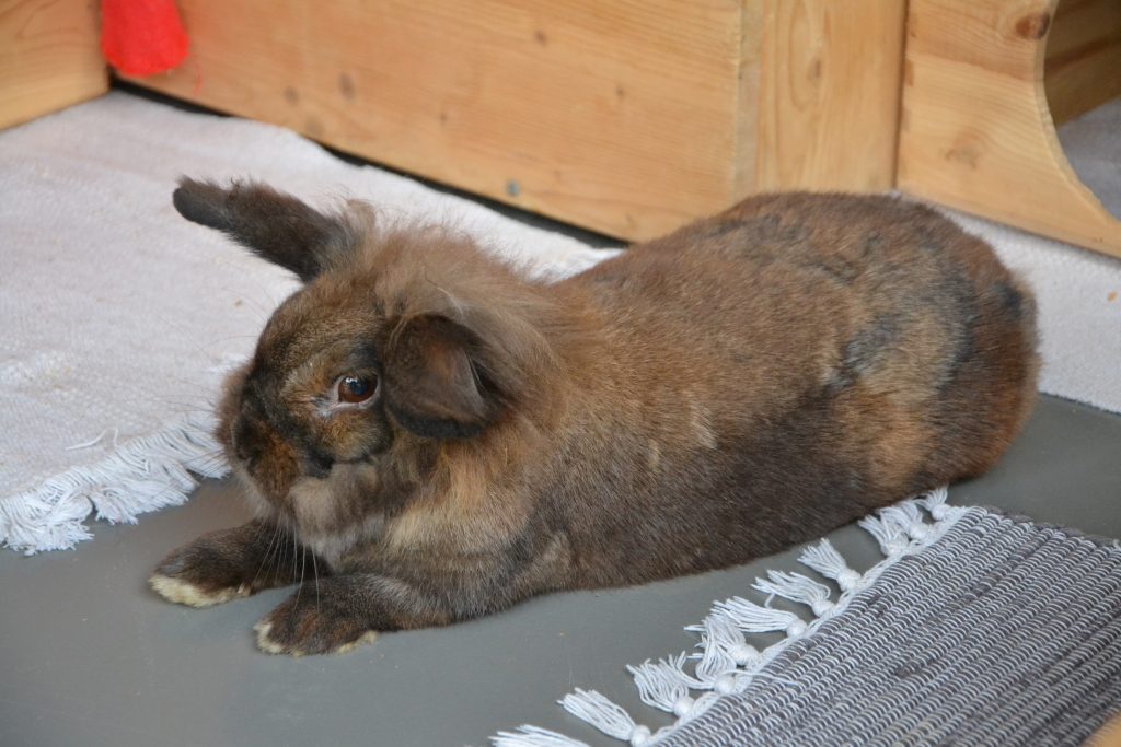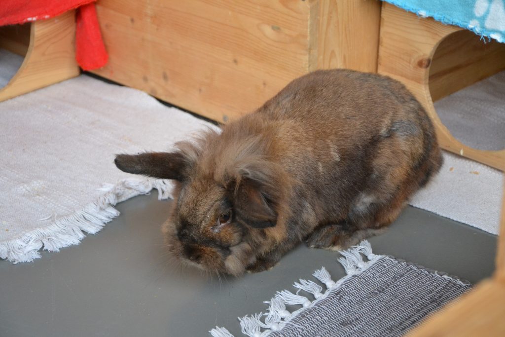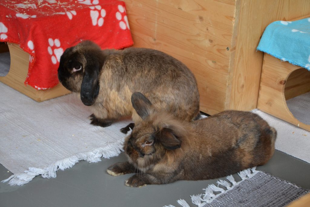 Ihre Verträglichkeit mit anderen Kaninchen müssen wir erst noch beobachten, die Tendenz geht aber eher zur Paarhaltung anstatt zur Gruppenhaltung. Mit Ted versteht sie sich super und die beiden teilen sich nun ein eigenes Gehege.
