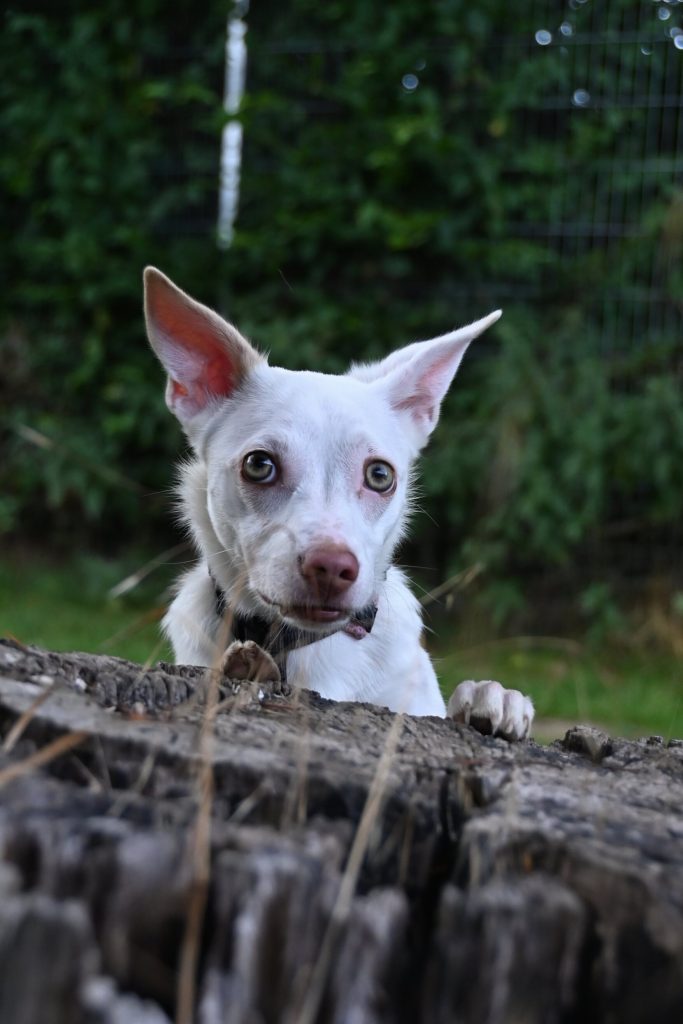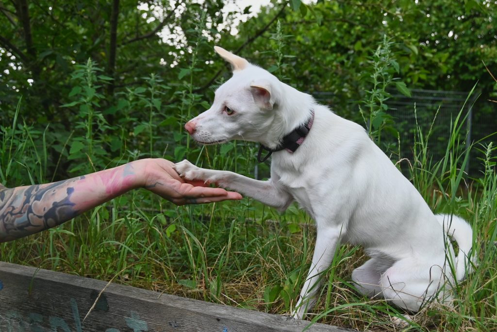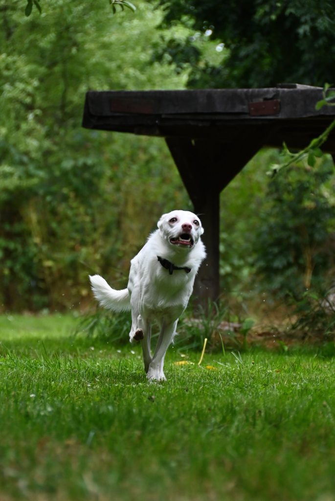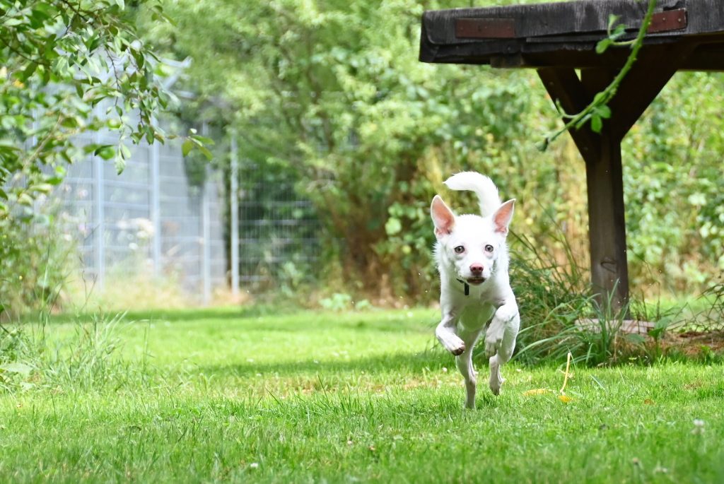 Gut ablenken lässt sie sich vorallem mit anderen Hunden. Ausgelassen tobt und spielt sie mit dem Junghund Pringles und zeigt dabei, wieviel Energie in ihr steckt.