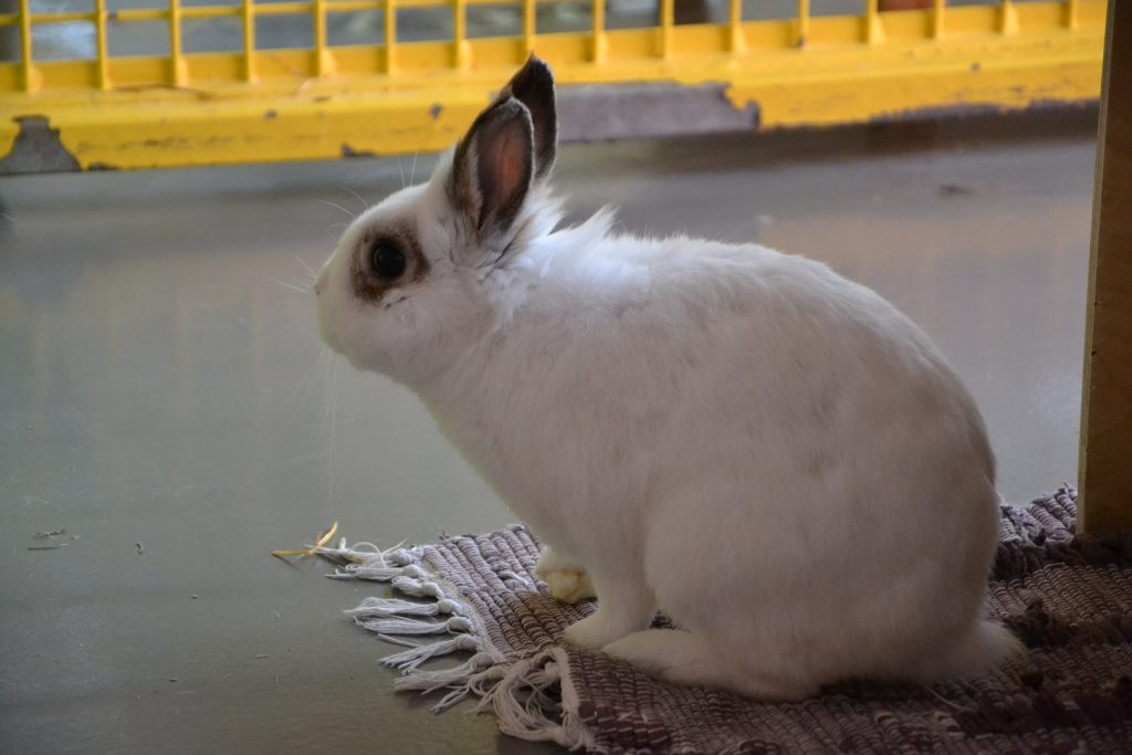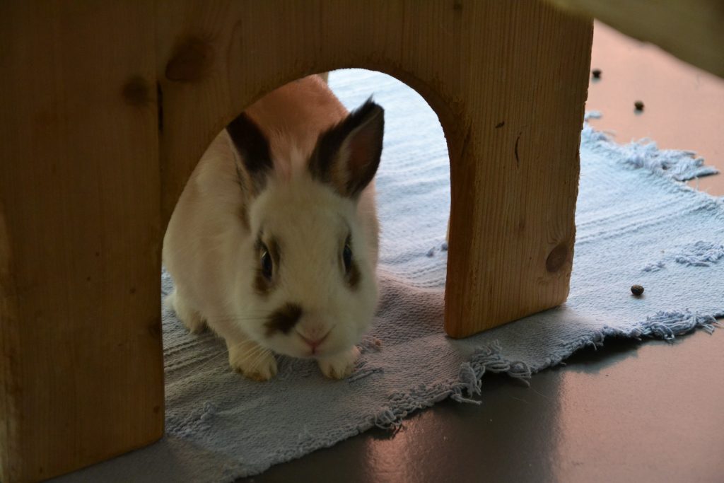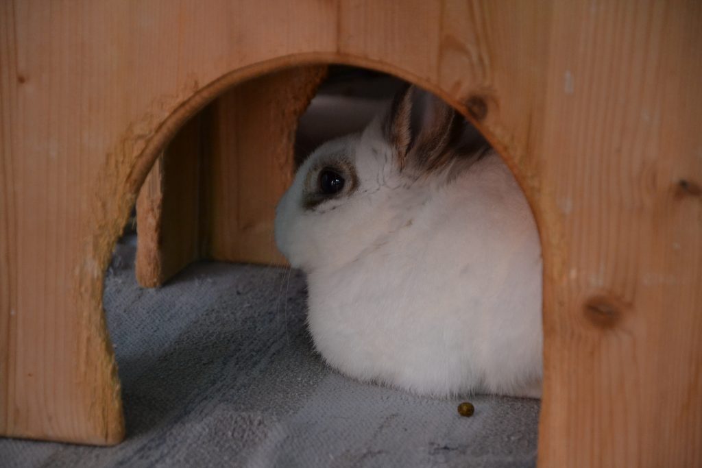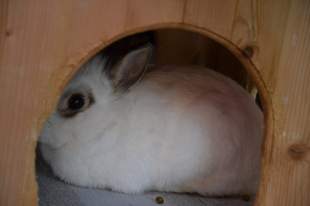 Grobi lebt bei uns mit den anderen Kaninchen in einer großen Gruppe, was gut klappt.