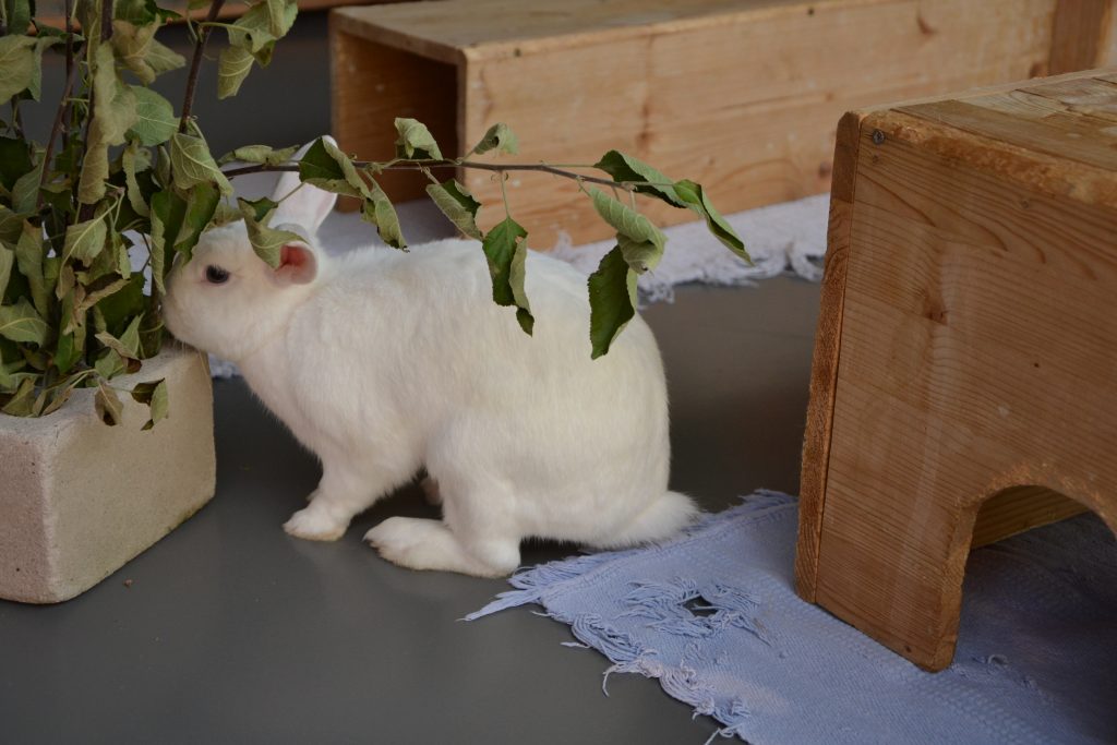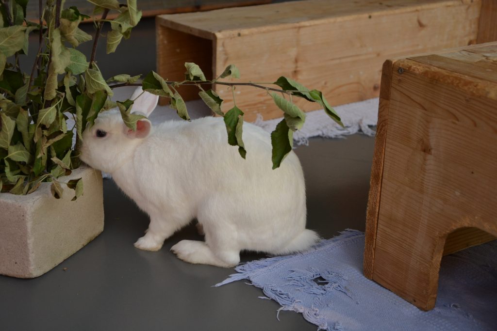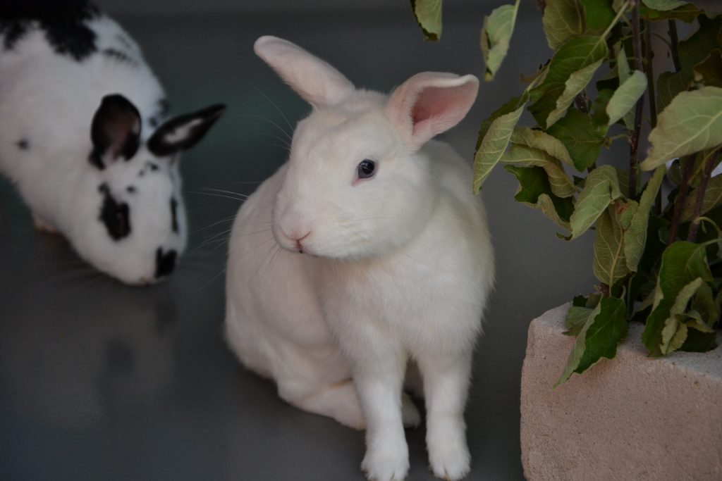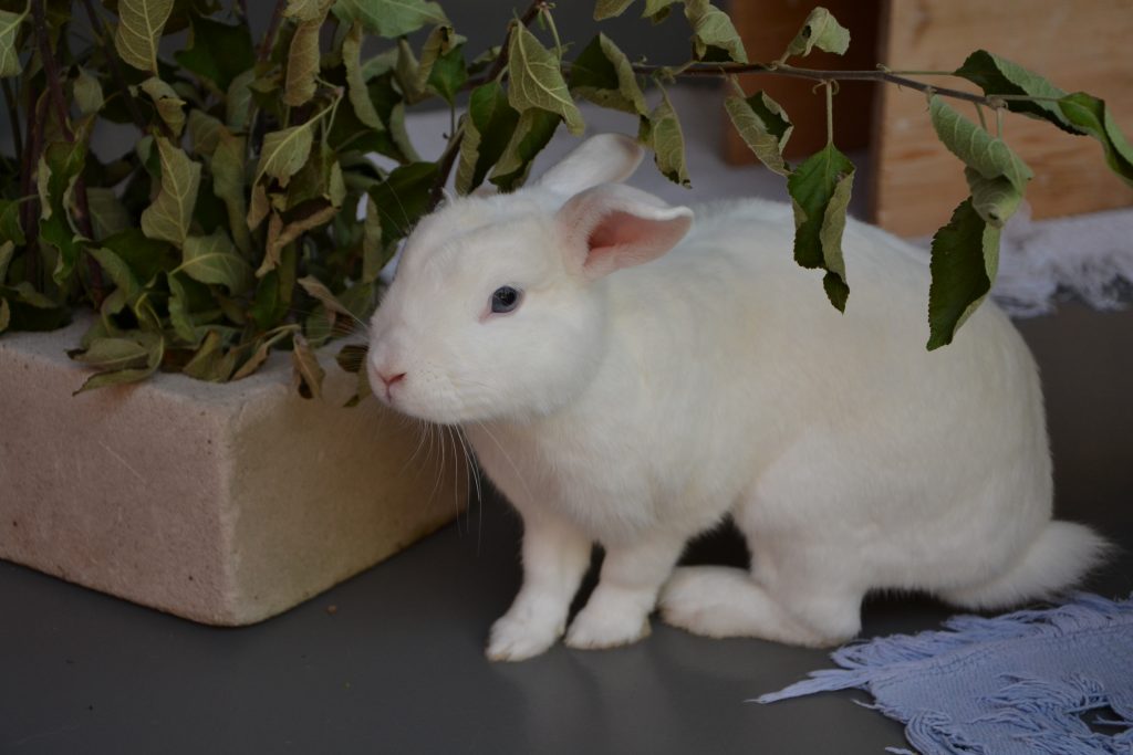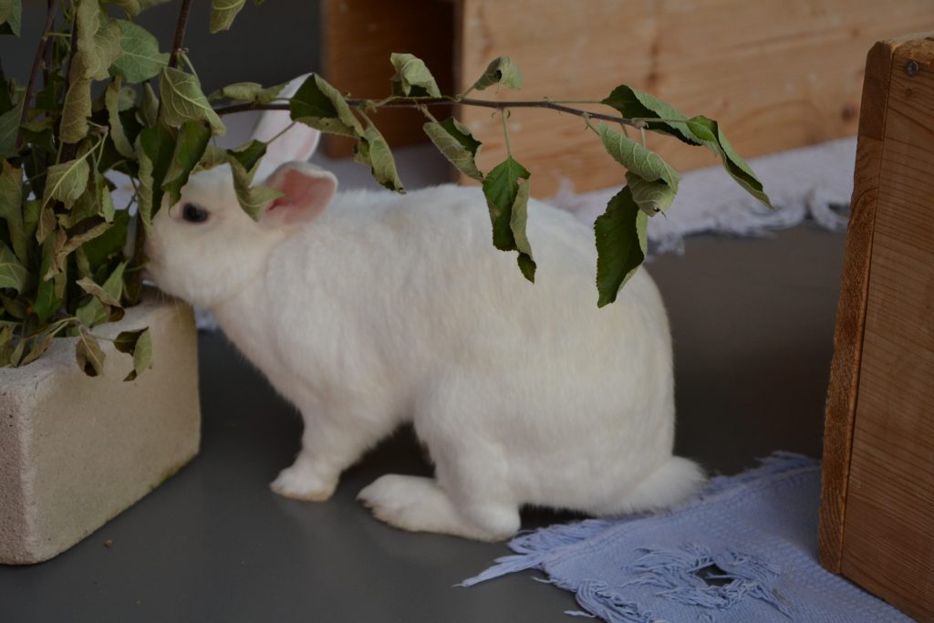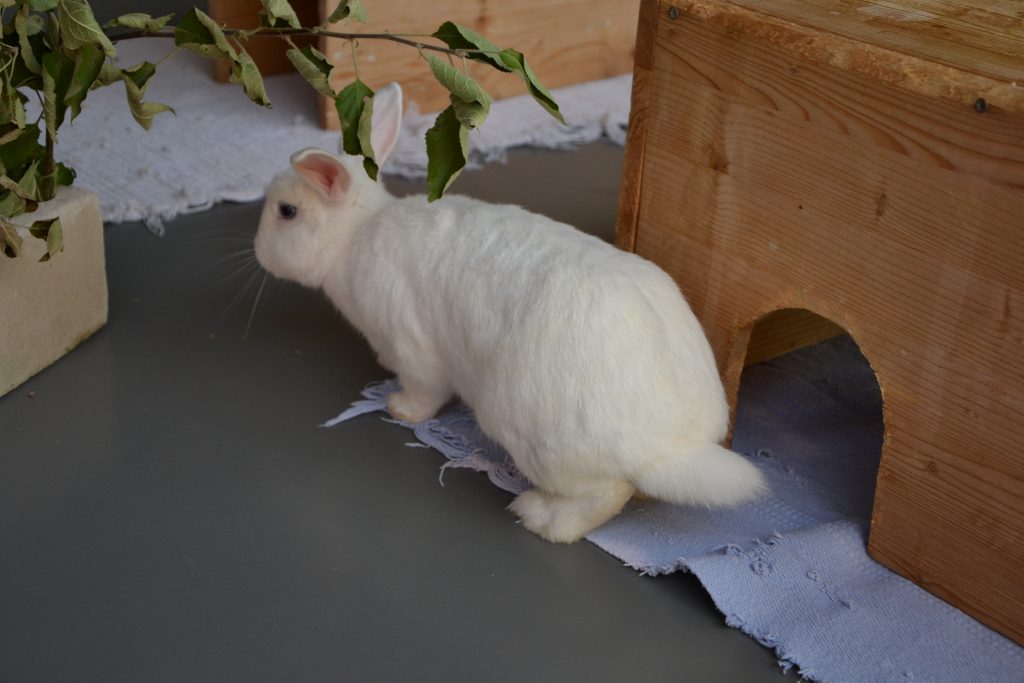 Indigo lebt bei uns mit den anderen Kaninchen in einer großen Gruppe, was gut klappt.