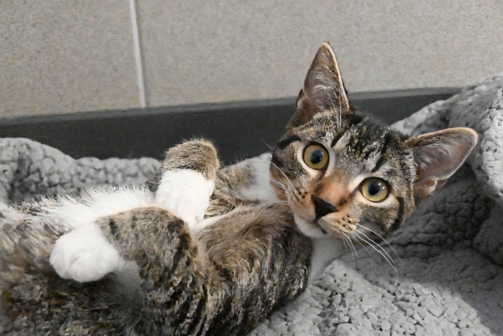 Der junge Kater ist zutraulich und verspielt. Gern kann er zu einem anderen jungem Kätzchen ziehen, mit dem er toben und spielen kann.