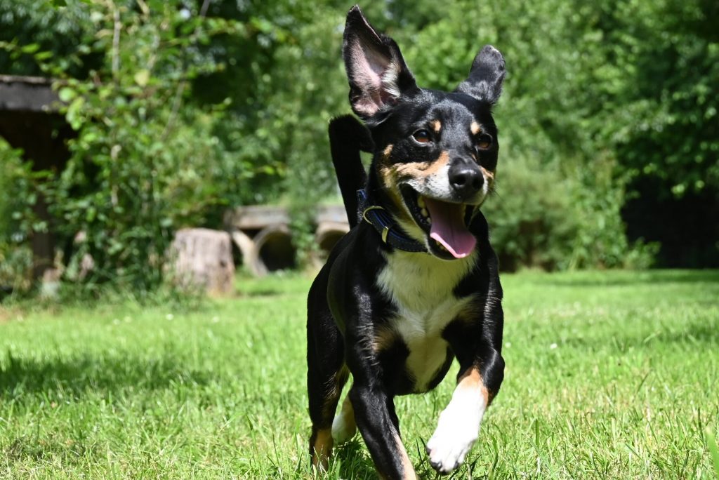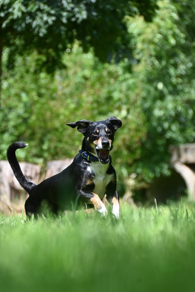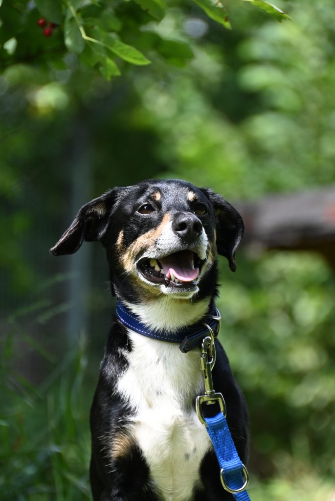 Der fröhliche, kleine Typ nimmt’s gelassen und freut sich auch über alle anderen Zweibeiner.