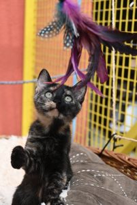 Die Schwestern könnten toll als Pärchen ausziehen, oder getrennt voneinander zu Artgenossen im ähnlichen Alter. Da sie recht zart sind, sowohl vom Charakter als auch vom Körperbau, würden wir sie nur zu einem ebenfalls weiblichen Tier vermitteln, da sie keine Lust auf die Rauferei von Katern haben.
