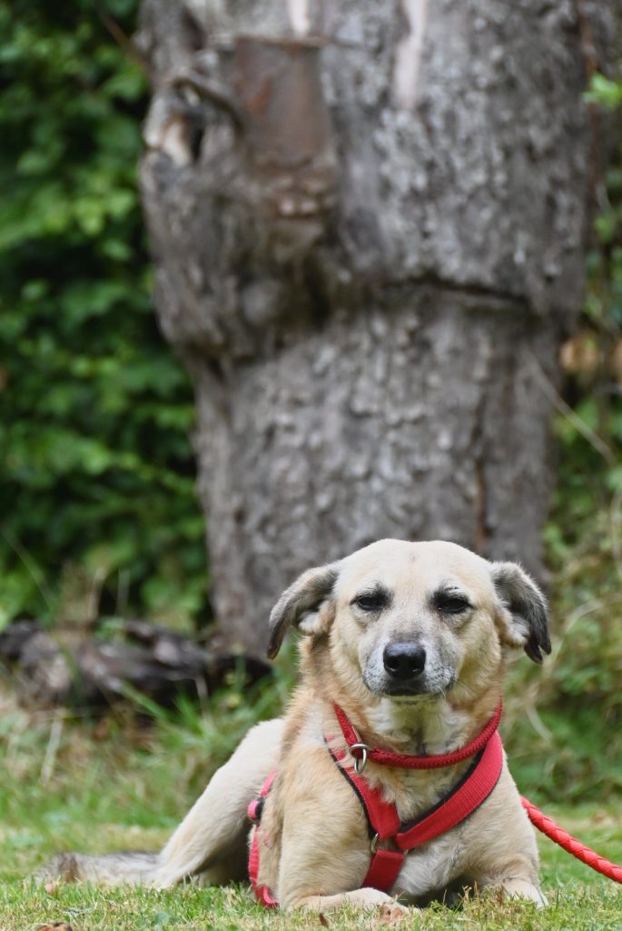 Jetzt sieht die Welt schon ganz anders aus! Pepe freut sich und wedeln kann er auch. Streicheleinheiten und Leckerlis findet er großartig.