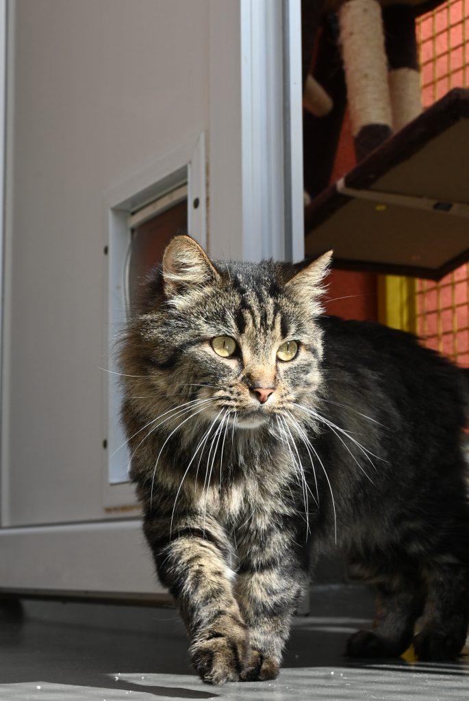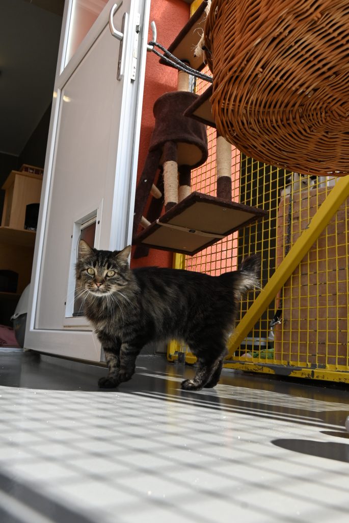 Wir sehen ihn idealerweise mit der Möglichkeit zum Freigang, wo er sich in der Nachbarschaft menschliche Gesellschaft suchen könnte, falls seine eigenen Menschen nicht da sein sollten.