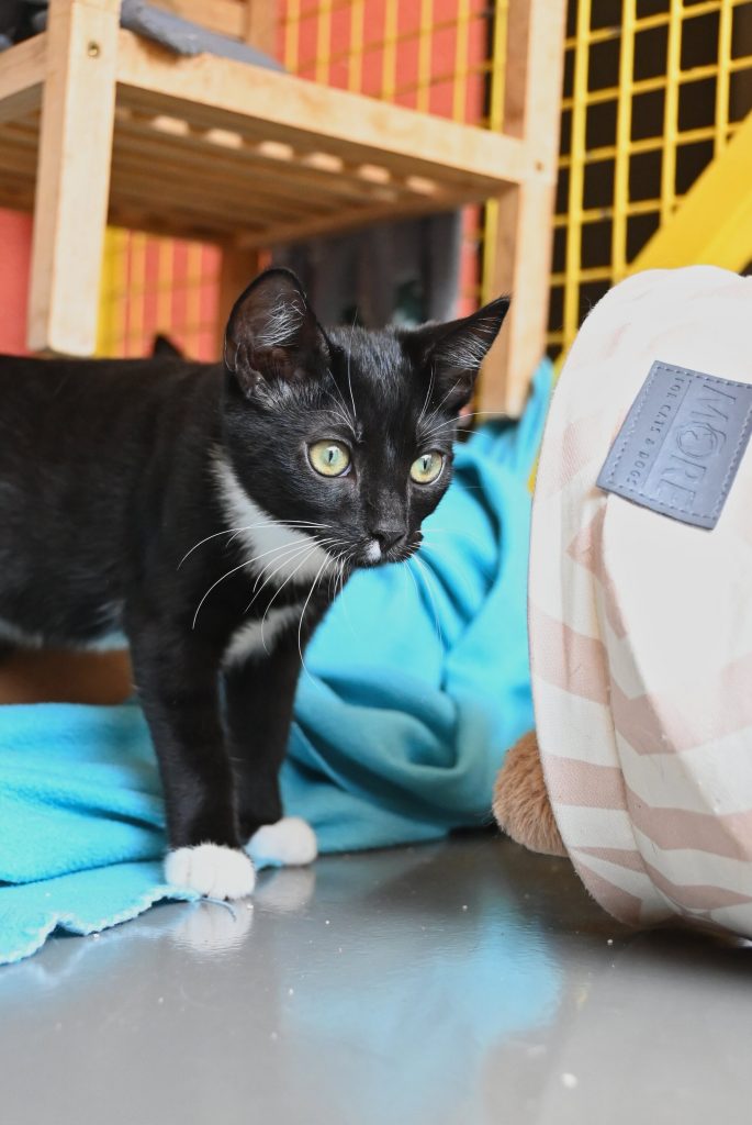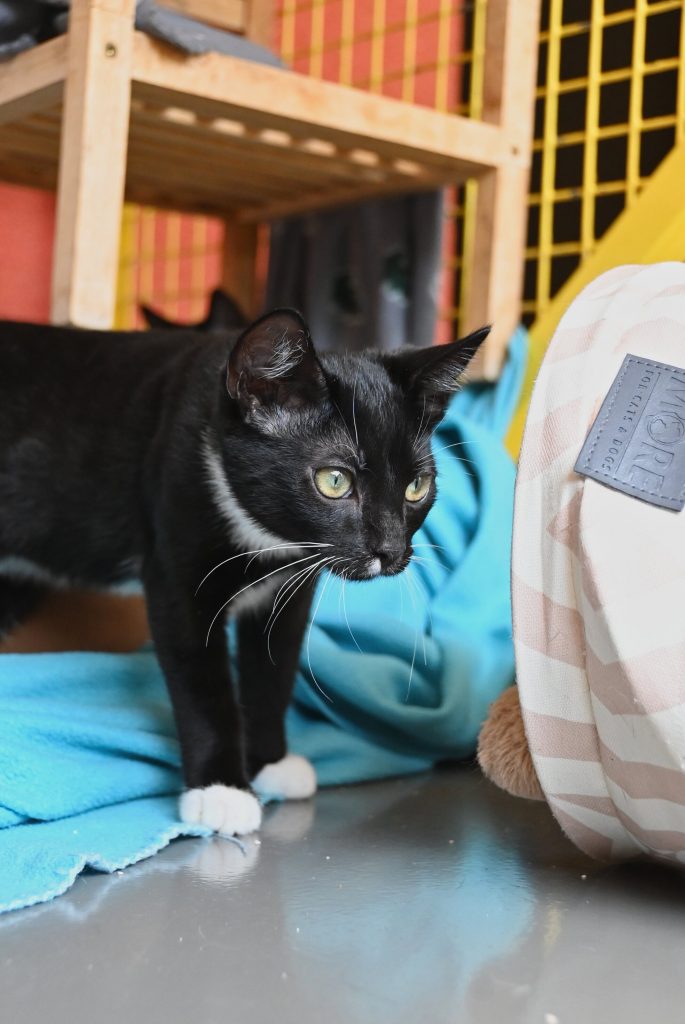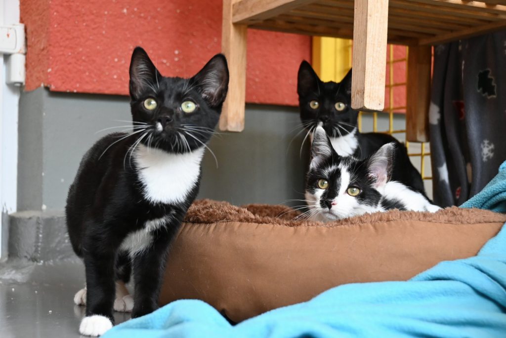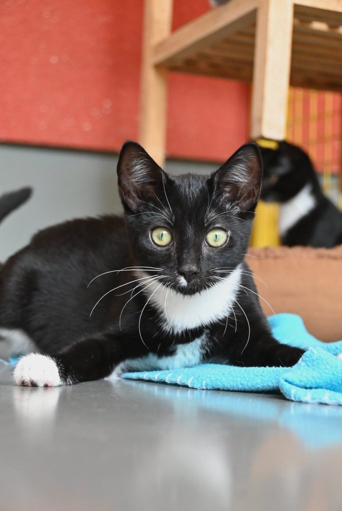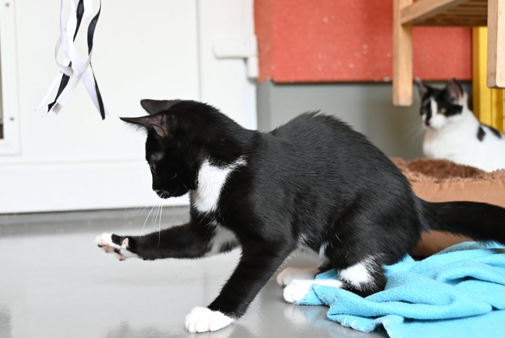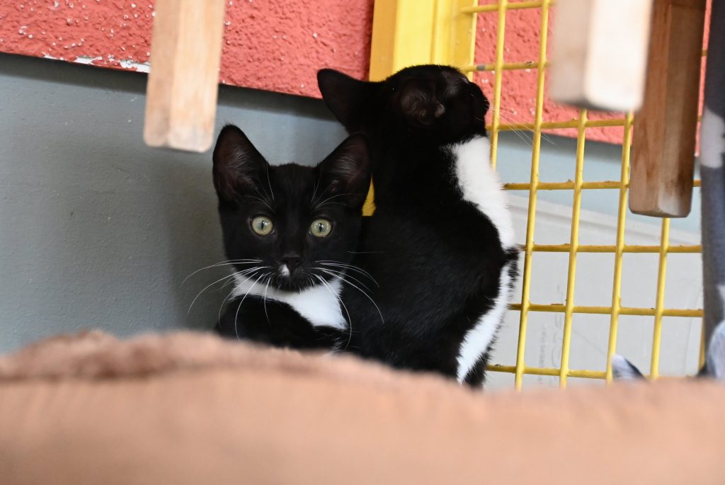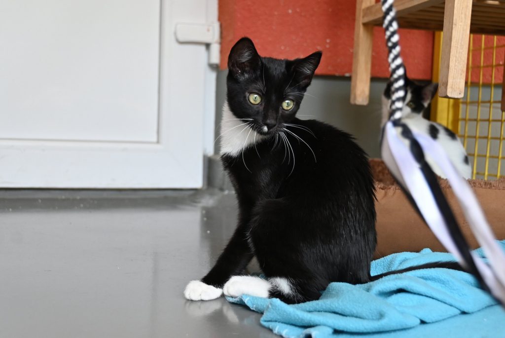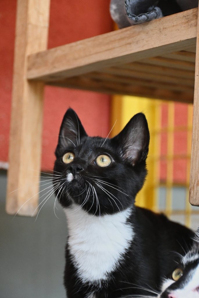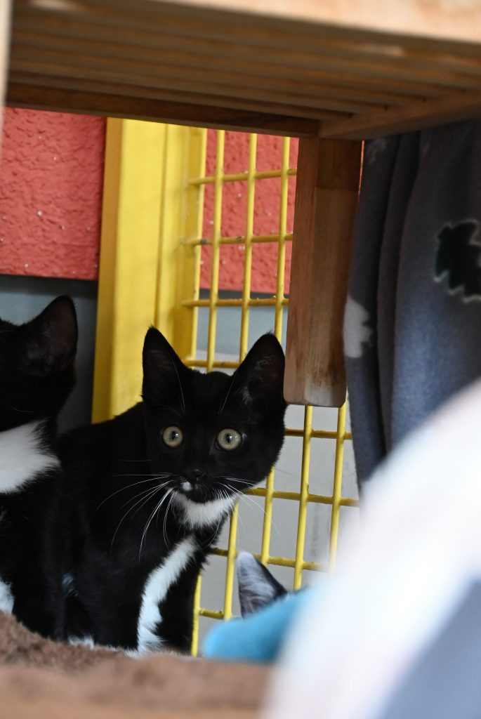 „Ich glaub ich seh doppelt“, das ist der häufigste Gedanke, wenn man das Zimmer der beiden betritt. Sie gleichen sich wirklich sehr. Sowohl optisch, als auch charakterlich. Beide sind etwas zurückhaltend dem Menschen gegenüber und mögen es (noch) nicht so gerne angefasst zu werden. Es wird immer ein kleines bisschen besser, aber das braucht Zeit und Geduld, bis sie Streicheleinheiten irgendwann genießen können. Hier sind Katzenkenner gefragt, die Spaß an einer kleinen Aufgabe haben. Aber man kann sie gut mit Leckerli und Spielzeug bestechen.