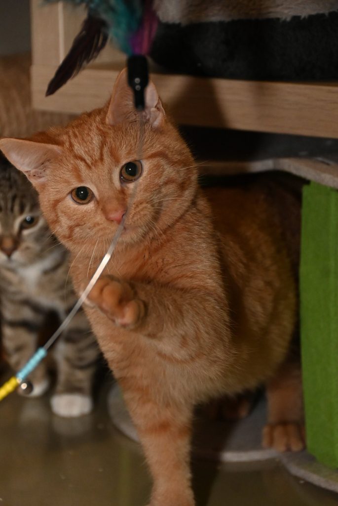 Der hübsche, kleine Mann ist ein wirklich netter Kerl. Er ist extrem sozial und braucht ganz viel Kuschelkontakt mit Artgenossen, aber auch Raufspiele mit ähnlich jungen Kumpel(s).