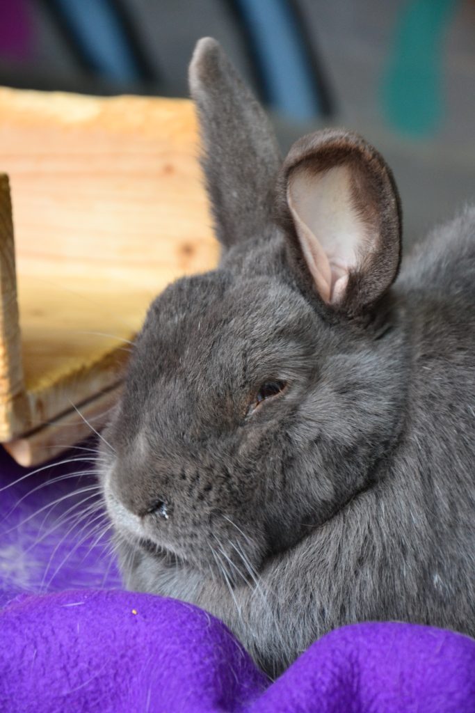 Dobby, Tic und Toe kamen nach 5 Jahren wieder zurück ins Tierheim, da ein Umzug die weitere Versorgung der Kaninchen unmöglich machte. Aus den einst jungen Teenager Kaninchen sind nun Senioren geworden. Toe ist ordentlich gewachsen und hat gut an Gewicht zugelegt. Ihre Größe sollte man vor der Anschaffung beachten und dementsprechend große Kaninchenmöbel im Gehege stehen haben.