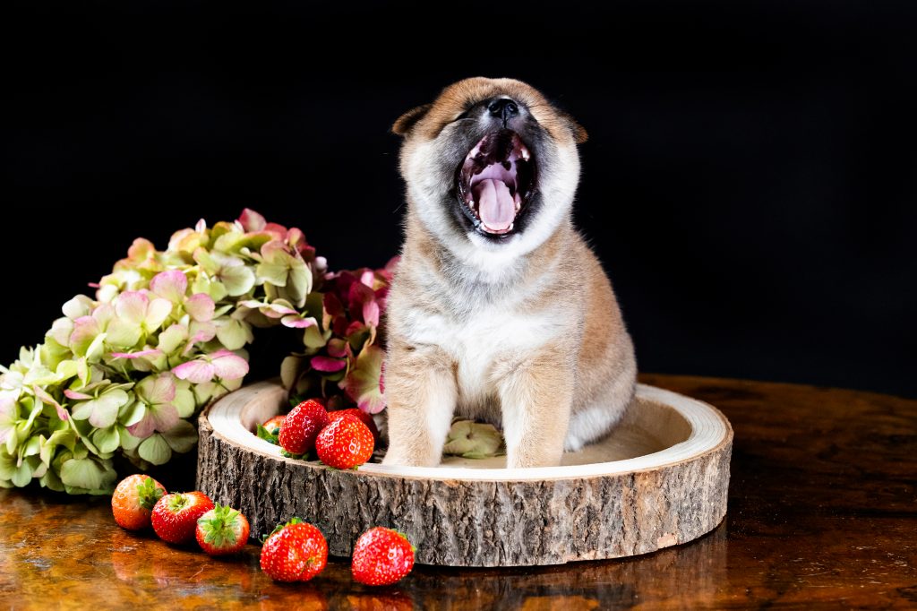 Zakuro (Granatapfel), Kokonattsu (Kokosnuss), Ichigo (Erdbeere), Buruberi (Blaubeere) sind die vier Mädels im Wurf. Nashi (Birne) ist der einzige Rüde.